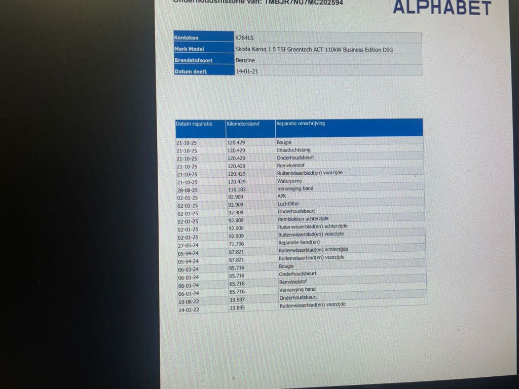 - Onderhoudsboekje aanwezig