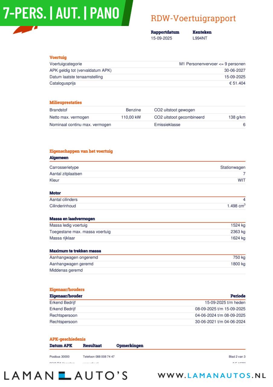 | Aantal zitplaatsen: | 7 |