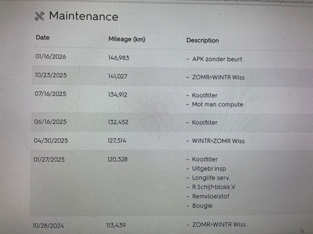 - Onderhoudsboekje aanwezig