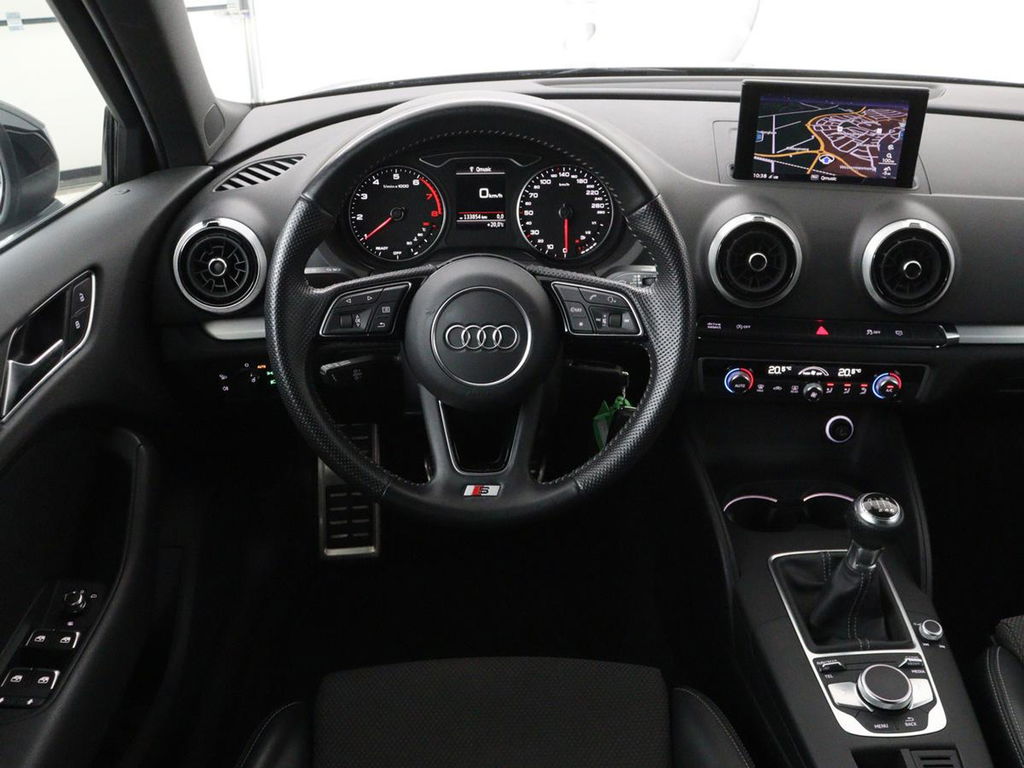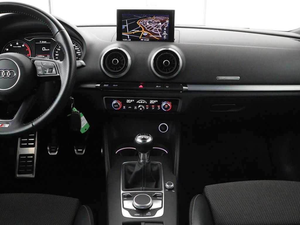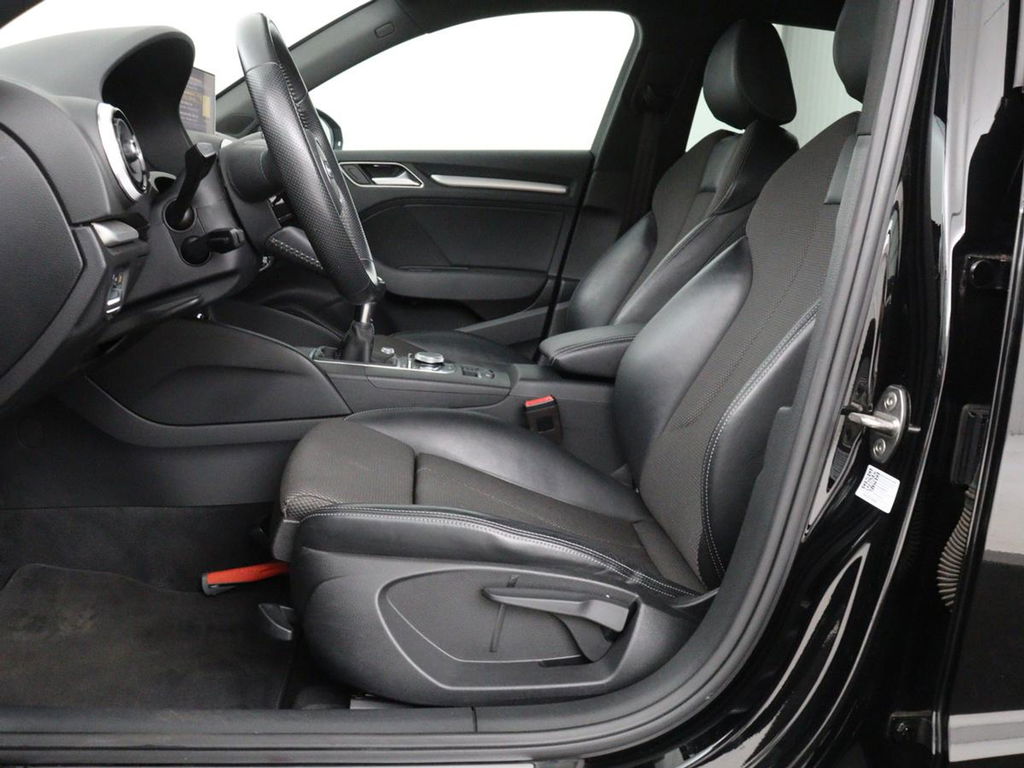 Een goede auto vervoert u niet alleen van a naar b, maar stimuleert u ook en geeft u energie. Het comfort van deze Audi A3 maakt van iedere rit een genoegen, u komt steeds vol energie op uw bestemming aan. Met de S-Line styling trekt u op een positieve manier de aandacht. In deze auto vindt u een benzinemotor en een handgeschakelde zesversnellingsbak. Comfortabel zitten, ook als de rit onstuimig is? Dat kan met de sportstoelen. Tot de uitrusting behoren ook 18 inch lichtmetalen velgen, LED koplampen, sportonderstel, halflederen bekleding, warmtewerend glas en in delen neerklapbare achterbank.Deze Audi is voorzien van knoppen op het stuur om het full map navigatiesysteem en het audio-installatiesysteem te bedienen. De achteropkomend verkeer waarschuwing geeft een signaal als degene achter u te dicht op u zit. Ook handig en veilig bij het wisselen van rijbaan. Of het buiten nu warm is of koud, dankzij automatische airconditioning is het binnen altijd behaaglijk. Inparkeren zonder angst voor schade. De parkeersensoren helpen u om moeiteloos in de kleinste parkeervakken te manoeuvreren. Natuurlijk is een complete auto als deze ook voorzien van sensoren die de omgeving in de gaten houden. Deze Audi heeft niet alleen een automatisch inschakelbare verlichting aan boord, maar ook een regensensor. De Audi is standaard voorzien van: cruise control, sportstuurwiel, centrale deurvergrendeling met afstandsbediening en boordcomputer.