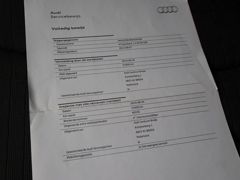 EU verantwoordelijke: Audi AG Auto-Union-Straße 1 85057 Ingolstadt, NL 0800-28347378423 https://www.audi.de/de/ kundenbetreuung@audi.de1.4 TFSI 122 PK met 6 versnellingen, Briljantzwart met 18 inch zwarte lichtmetalen velgen, S-Line badges op de voorschermen, maar geen fabrieks S-Line uitvoering, Sportstoelen, Leder stuurwiel, Privacy glass, Navigatie, Airco, Cruise control, Bluetooh met audiostreaming, Parkeersensoren.