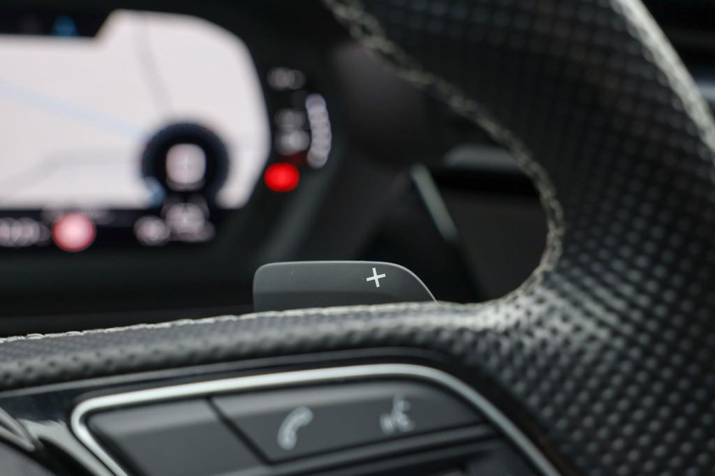 - Sportstuurwiel, multifunctioneel in leder, driespaaks met schakelpaddels