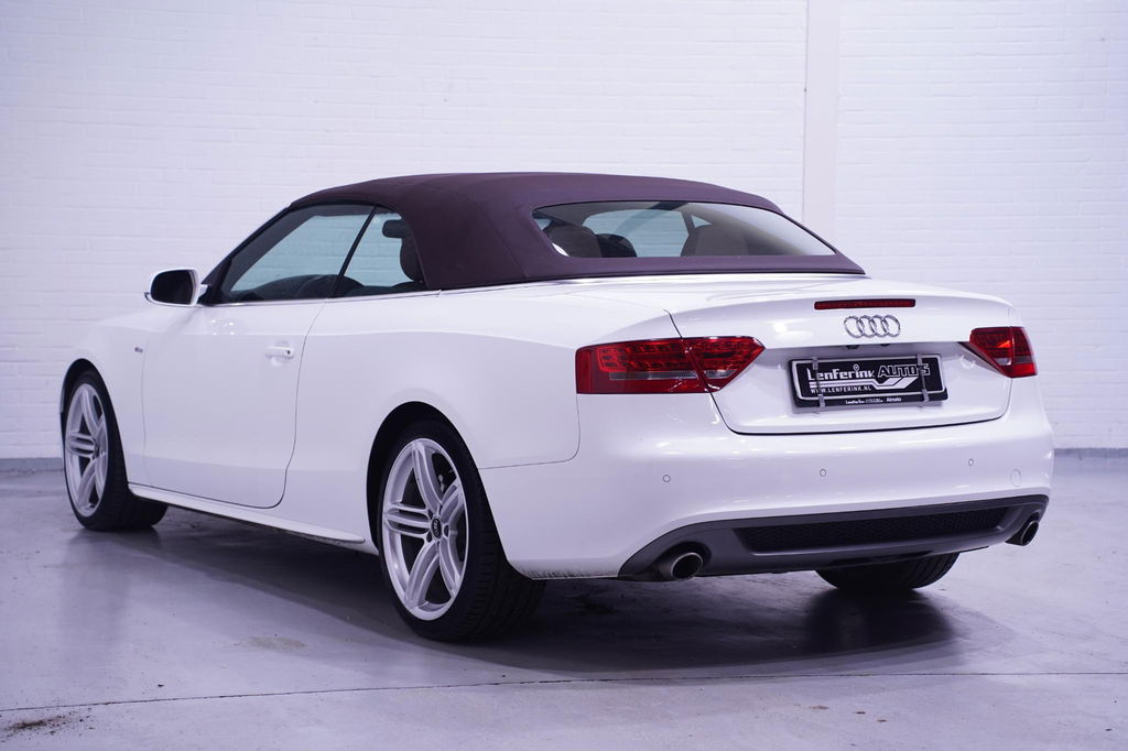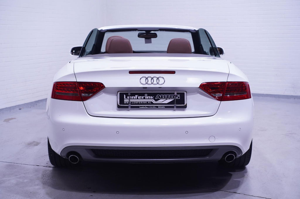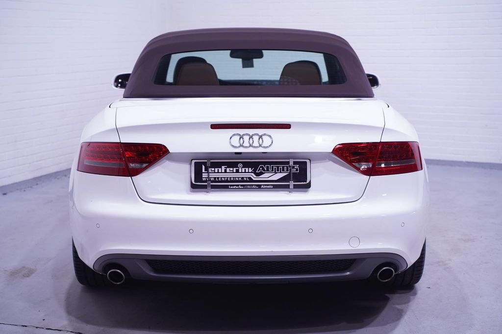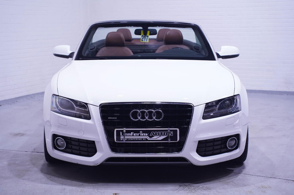 Met een auto als deze Audi A5 Cabriolet komt u absoluut goed voor de dag. Deze auto komt uit 2011. Met zijn dieselmotor en automatische transmissie is dit een prima auto voor nog vele kilometers. Een lederen interieur staat al decennia voor stijl en klasse. Ook bij deze Audi A5 Cabriolet. Doe maar luxe! Neem plaats in de verwarmbare voorstoelen en voel de weldaad in koude dagen. Stevig ondersteund door de sportstoelen blijft u bij elke beweging op uw plek. Een handige voorziening op deze auto is de elektrische achterklep die u op afstand kunt openen. Dankzij de xenonverlichting profiteert u in het donker van een krachtige en heldere lichtbundel. Tot de uitrusting behoren ook 19 inch lichtmetalen velgen, sportonderstel, adaptief dempingsysteem, warmtewerend glas, zwarte hemelbekleding en elektrisch inklapbare buitenspiegels.