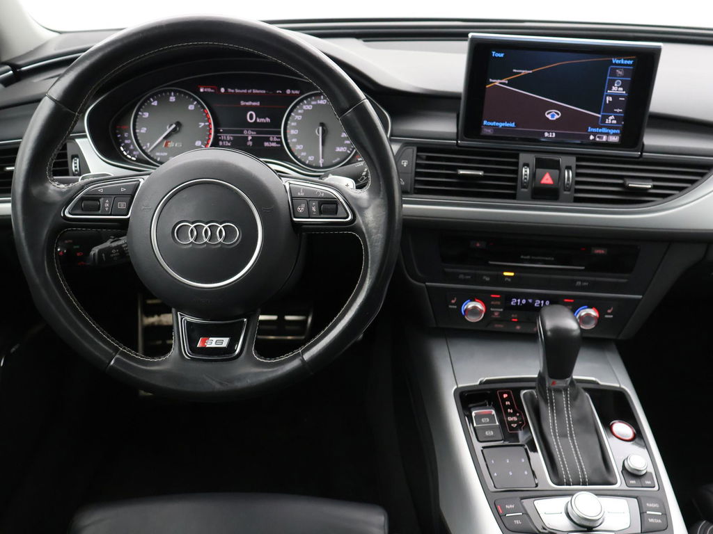 Audi S6 4.0 TFSI 450 PK Quattro met slechts 95.346 km gereden, Elektrisch wegklapbare trekhaak met 2100 kg trekgewicht op kenteken, Zwart lederen sportstoelen met wit stiksel, Panorama schuif/kanteldak, Dodehoek assistentie, Bose surround, Stoelverwarming voor + achterin, Elektrische achterklep, Keyless-entry en keyless-drive, 4-zone climate control, 20 inch lichtmetalen velgen, Achteruitrijcamera.