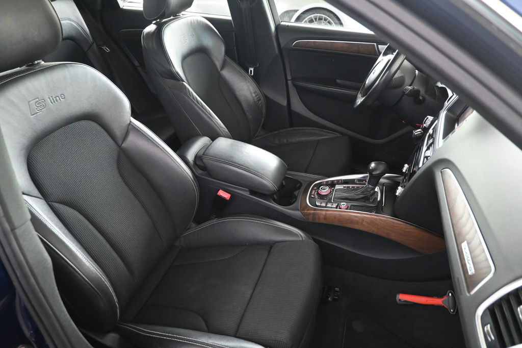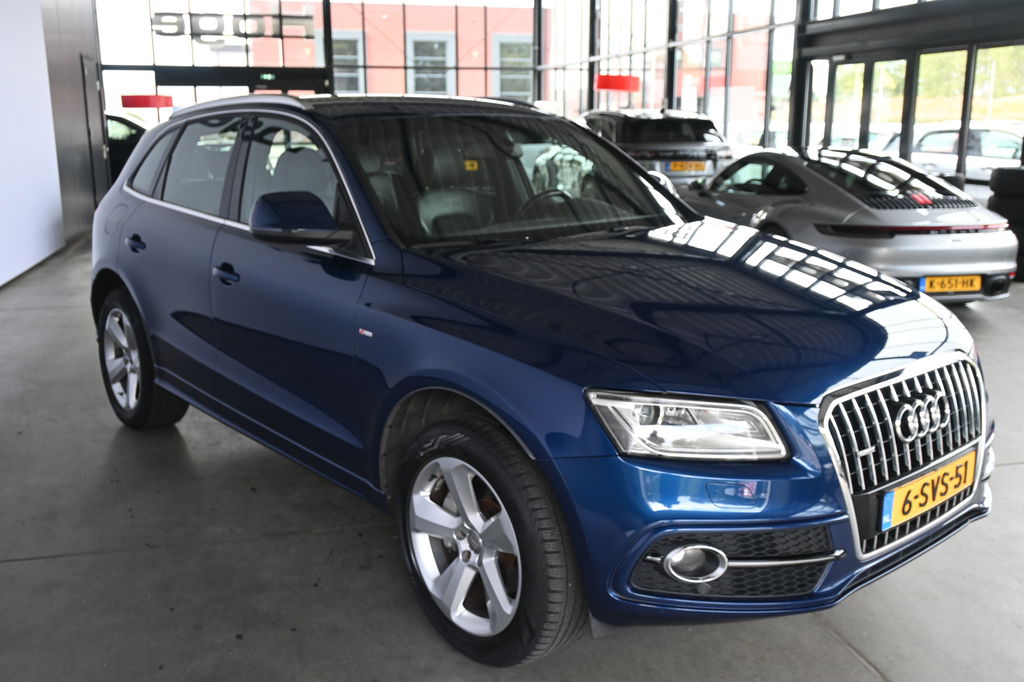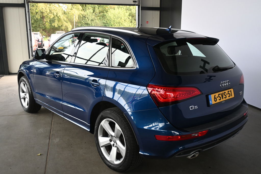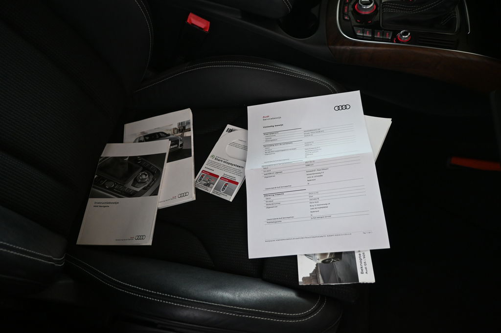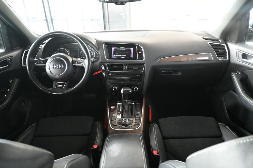 Onderhoudsboekjes: DigitaalEen toonbeeld van Duitse kwaliteit in techniek, comfort en rijprestaties. Dat is deze Audi Q5. Grijze muizen zijn er al genoeg. Daarom heeft deze auto een lekker pittige S line exterieur styling. De auto is van het bouwjaar 2014 en is van de eerste eigenaar. De aandrijving wordt verzorgd door een zescilinder dieselmotor en een automatische transmissie. De sportstoelen geven u veel zitsteun. De achterklep opent automatisch met een druk op de knop. Handig als u met volle handen staat. Xenonverlichting zorgt voor een krachtige en heldere lichtbundel. Bij de uitrusting van deze Audi horen onder meer 19 inch lichtmetalen velgen, sportonderstel, halflederen bekleding, warmtewerend glas, zwarte hemelbekleding en in delen neerklapbare achterbank.