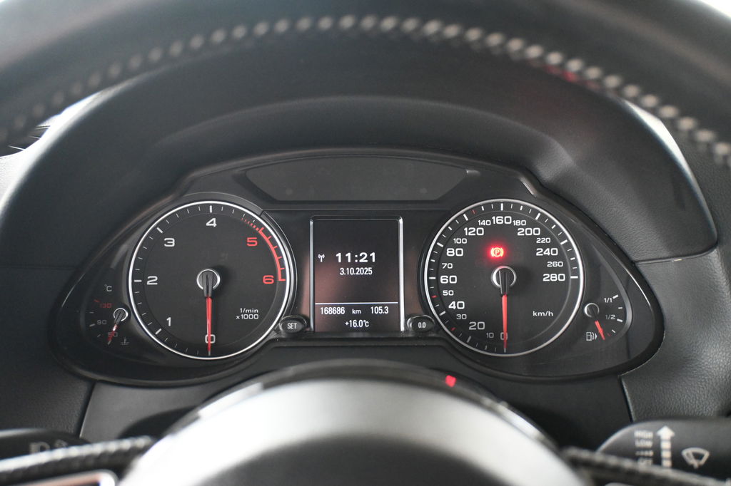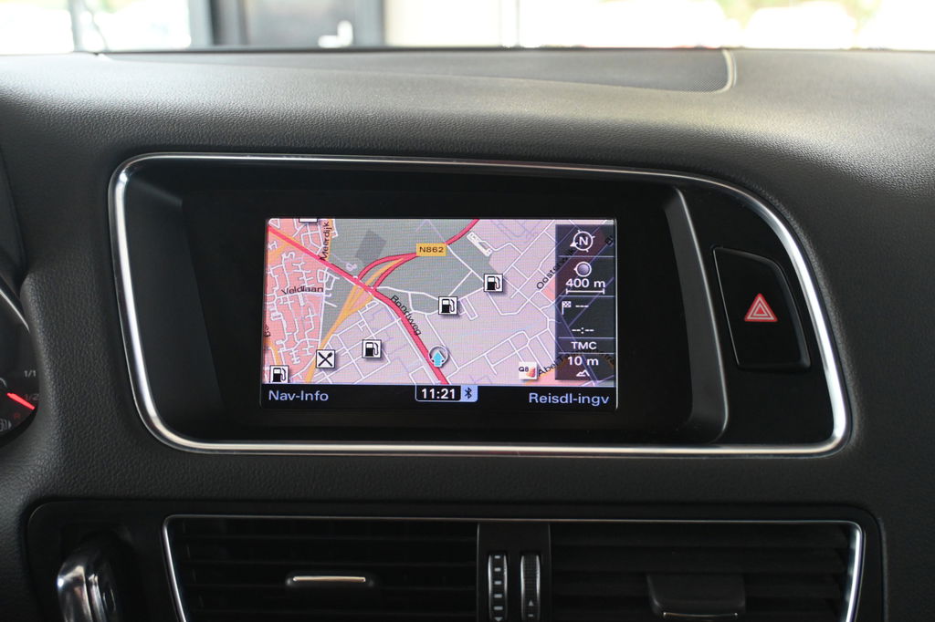 De auto is voorzien van een trekhaak en is een uitstekende caravantrekker. Zuinig, veilig en ontspannen op pad: dat kan dankzij het aanwezige full map navigatiesysteem. Bij de luxe van deze auto hoort ook volautomatische airconditioning. Onderweg wil je zo min mogelijk onnodige of afleidende handelingen verrichten. Vandaar ook de audiobediening op het stuur. Een plekje vinden in de binnenstad is één, inparkeren is twee. Voor dat laatste heeft deze Audi Q5 prima parkeersensoren die u een handje helpen. Extra opties op deze auto zijn: inklapbare trekhaak, regensensor, cruise control, sportstuurwiel, dvd-systeem en automatisch dimmende binnenspiegel.