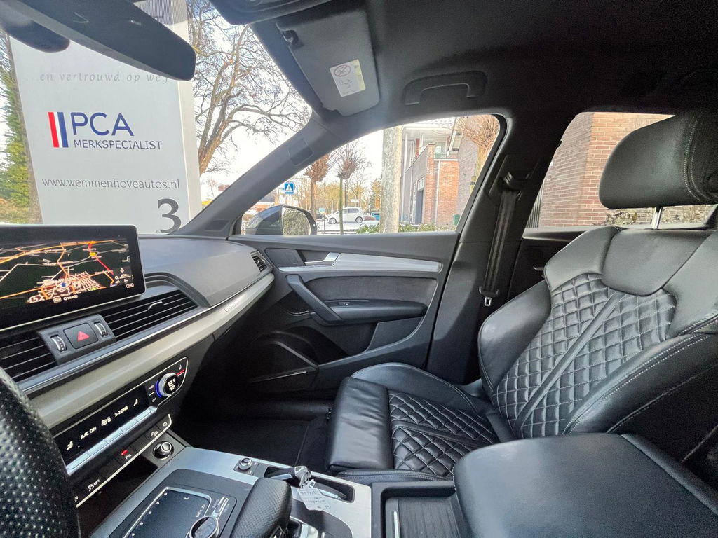Het slim uitgedachte digitale dashboard toont alle essentiële ritinformatie in één oogopslag. Omdat u nou eenmaal geen ogen in uw achterhoofd heeft, is het altijd lastig om achteruit te rijden zonder brokken te maken. De achteruitrijcamera lost dat probleem op. Naast handmatige bediening kunt u belangrijke functies met uw stem bedienen dankzij de ingebouwde spraakbediening. Een slim verborgen extra is de elektrisch inklapbare trekhaak. Deze Audi Q5 is 'connected'. Belangrijke functies worden permanent gemeten en zijn uit te lezen via een speciale app, ook op afstand. Natuurlijk behoren premium audiosysteem, full map navigatiesysteem, WIFI-hotspot, volautomatische airconditioning, schakelpaddles aan het stuur en draadloos opladen ook tot de uitrusting van deze complete auto.