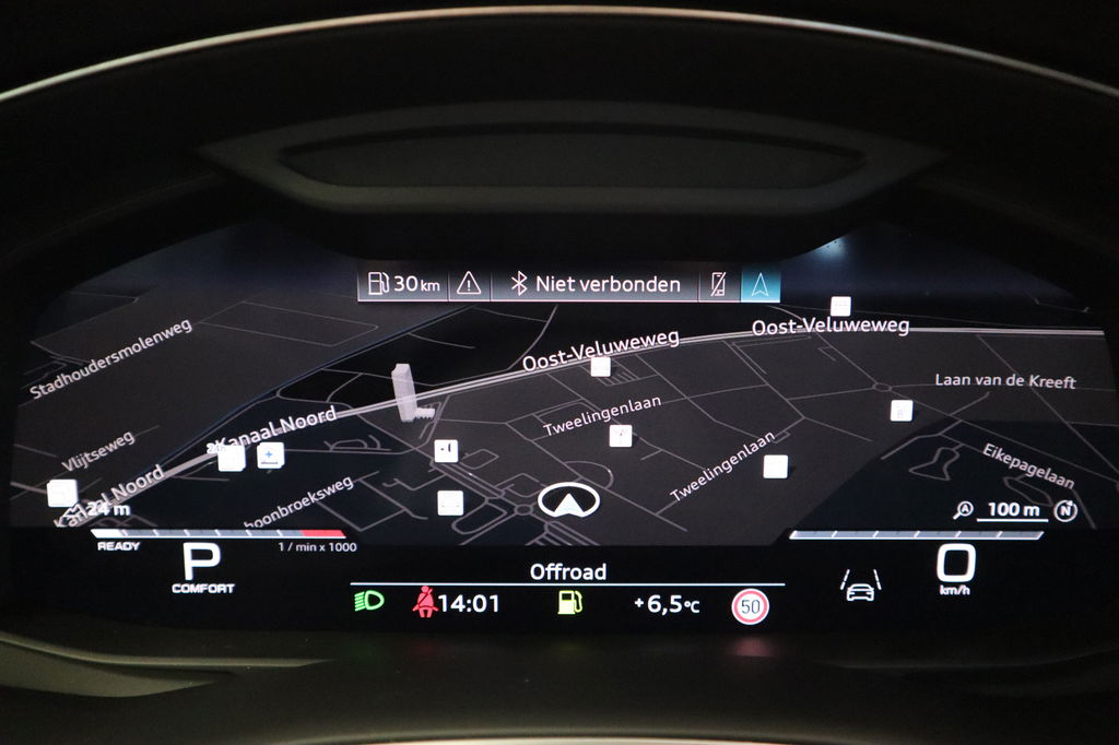 Begeef u op de geweldige rit door de digitale wereld van mobiliteit waar alles wat u wenst voor comfort en veiligheid, wordt geprojecteerd op het digitale dashboard. De 360 graden camera biedt een beter zicht bij slechte weersomstandigheden, waardoor u beter kan anticiperen op mogelijke gevaren. Adaptive cruise control houdt de ingestelde snelheid vast en houdt automatisch afstand tot uw voorligger. Na een lange werkdag in de file: daar zit niemand op te wachten. Gelukkig helpt de file assistent een handje. Het radarsysteem meet de ruimte tot de voorligger en bewaakt de juiste afstand. Stilstaan? Dan remt en stopt de auto vanzelf. Dankzij Connected Services weet u precies waar uw auto geparkeerd staat. Ook andere functies, zoals bandenspanning en brandstofniveau, zijn via de app altijd onder handbereik. Deze Audi is voorzien van high performance audiosysteem, full map navigatiesysteem, WIFI-hotspot, electronic climate control, schakelpaddles aan het stuur en draadloos opladen.