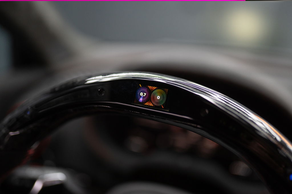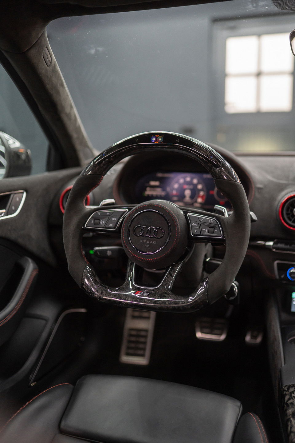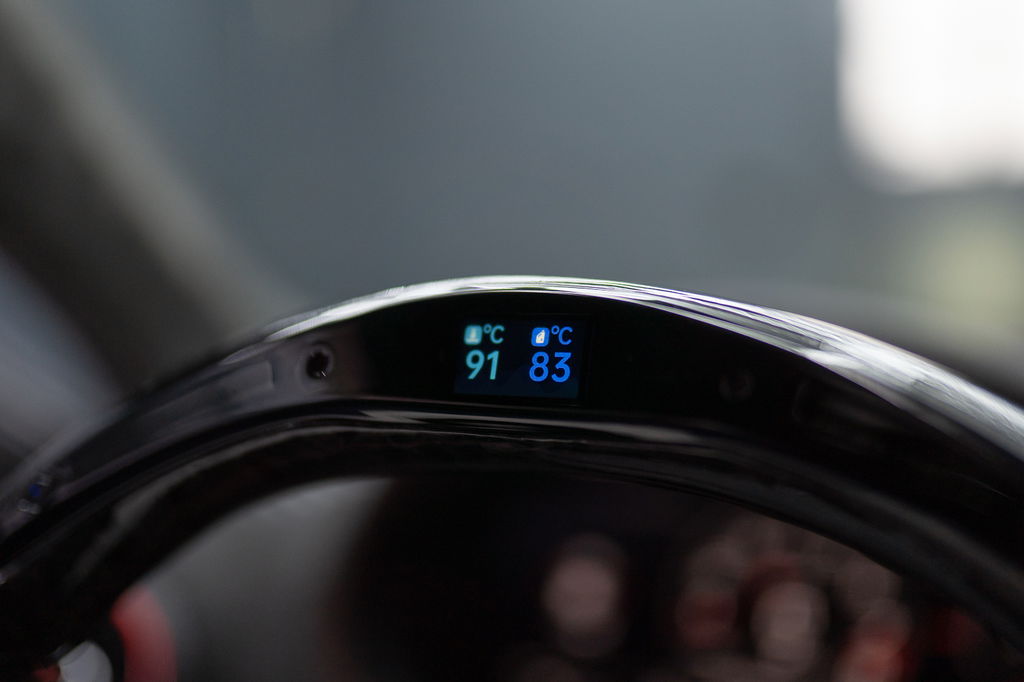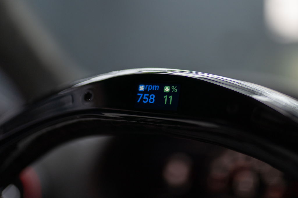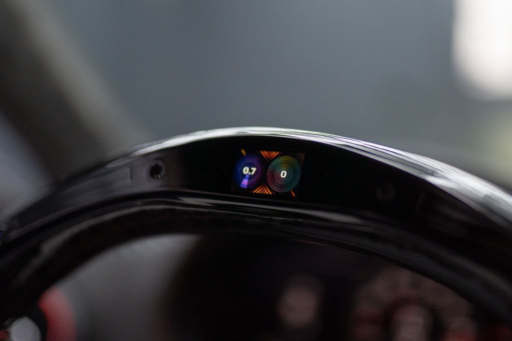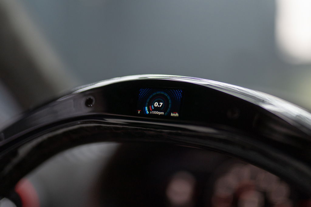 • Custom forged carbon/alcantara stuur met LED-indicatoren
