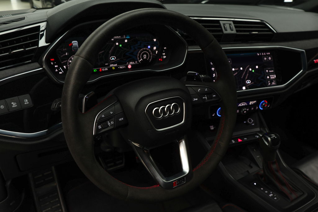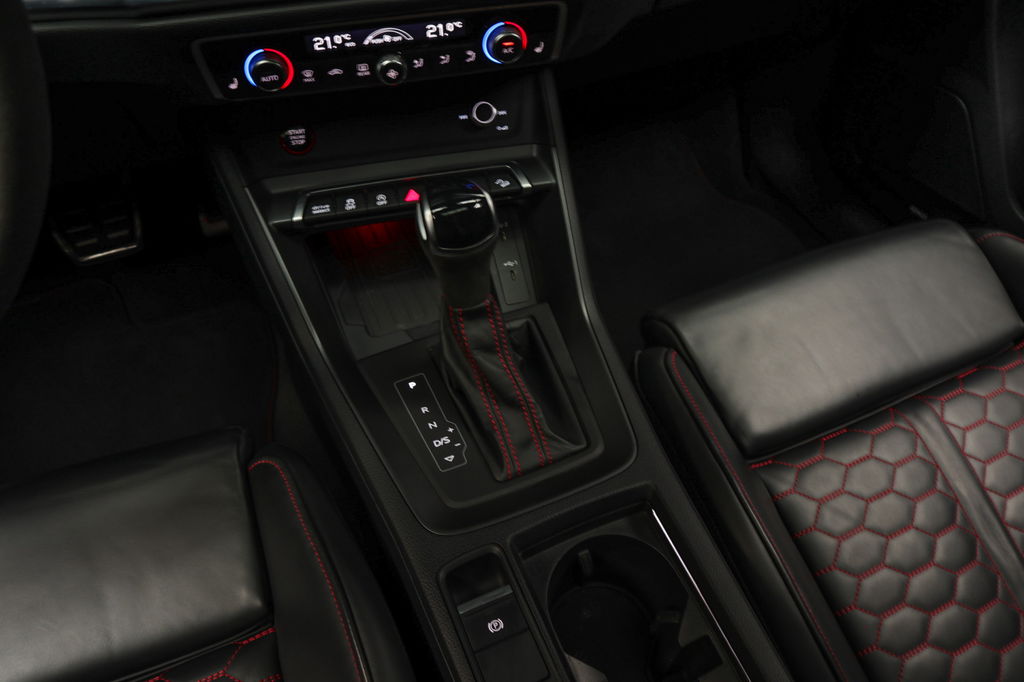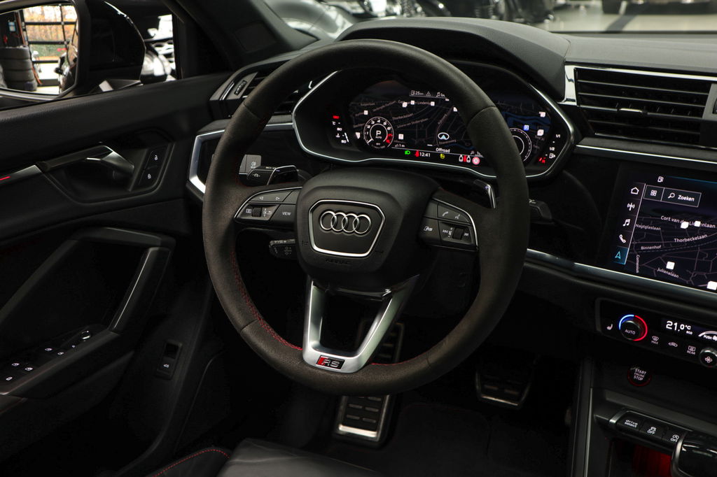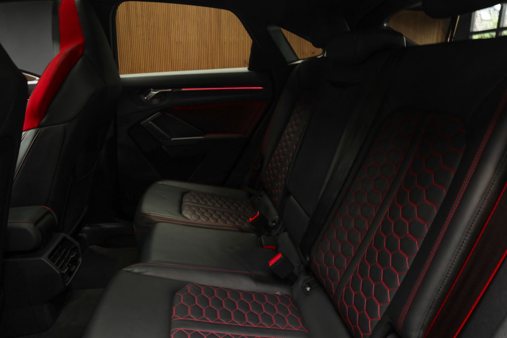 Degelijk, solide en technisch hoogstaand: dat kun je van Duitse auto's nog altijd zeggen. En die omschrijving geldt zeker voor deze Audi RSQ3 Sportback. Veel auto, veel kwaliteit. Een vijfcilinder benzinemotor en een automatische transmissie zorgen voor de uitstekende prestaties van deze auto. De lederen bekleding benadrukt de luxe uitstraling van deze auto. Lekker hoor, die verwarmbare voorstoelen. Helemaal op koude dagen. Zijwaartse g-krachten worden solide opgevangen door de sportstoelen. De bagageruimte is toegankelijk via een comfortverhogende elektrische achterklep. De matrix LED-verlichting is het allernieuwste op het gebied van autoverlichting. Altijd maximaal licht op de weg, zonder tegenliggers te hinderen! Natuurlijk behoren 21 inch lichtmetalen velgen, warmtewerend glas, Audi instelbaar onderstel (drive select), zwarte hemelbekleding, dakspoiler en in delen neerklapbare achterbank ook tot de uitrusting van deze complete auto.