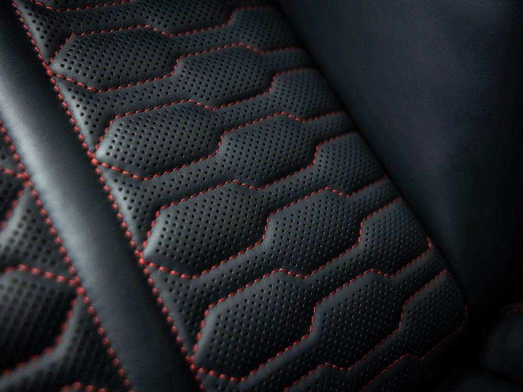 - RS-sportstoelen vóór in leder Valcona gepeforeerd met honingraat stiksel en stoelventilatie