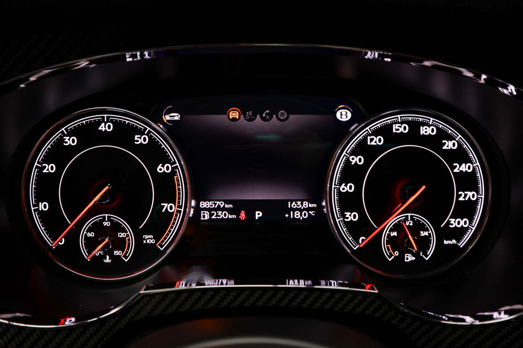 De vier camera’s rondom de auto creëren samen een onbelemmerd 360-graden uitzicht. Met adaptive cruise control houdt de auto zelfstandig afstand tot uw voorligger; een veiligheidsverhogende optie die bovendien extra comfort biedt. De onderhoudsstatus van deze auto controleert u snel en eenvoudig via uw smartphone. Het infotainmentaanbod is zeer uitgebreid. Ontspannen reizen doet u met behulp van het full-map navigatiesysteem, terwijl u muziek luistert via het audio-installatiesysteem met DAB-radio. Smartphones die draadloos kunnen opladen, halen moeiteloos een volle accu via de ingebouwde oplaadfunctie. Verder bent u in deze Bentley voorzien van een met leder bekleed dashboard, dashboard met spraakbediening, wifi-hotspot, electronic climate control, regensensor en automatisch dimmende buitenspiegels.
