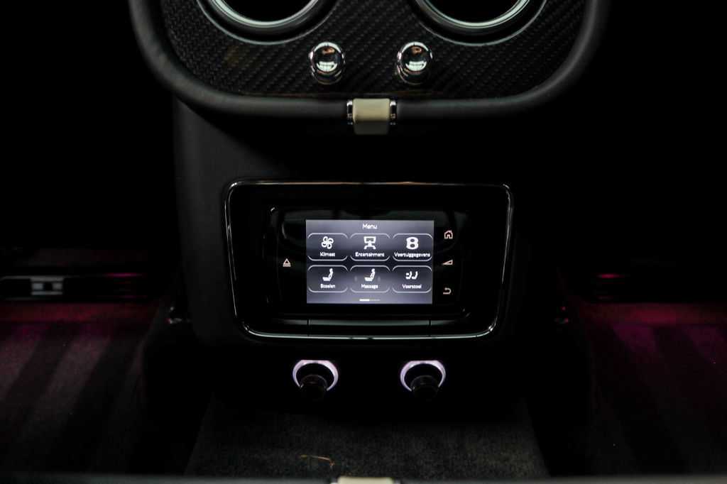 Voor de passagiers op de achterbank biedt de draadloze afstandsbediening met touchscreen toegang tot allerlei functies, van muziek- en stoelinstellingen tot verwarming en ventilatie. Voor nóg meer luxe achterin voegt het optionele Bentley Rear Entertainment-systeem twee high-resolution touchscreens toe aan de achterkant van de voorstoelen. Passagiers kunnen hun telefoon rechtstreeks koppelen om content te streamen, en zelfs gameconsoles aansluiten via de HDMI-poorten. Het geluid kan worden afgespeeld via de meegeleverde oortelefoons, via eigen hoofdtelefoons of via de luidsprekers van het audiosysteem.