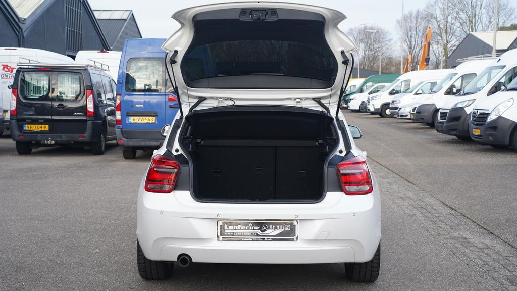 Wanneer je achter het stuur van deze BMW 1-serie kruipt, ervaar je het ongeëvenaarde Duitse vakmanschap die hem tot een klasse apart maakt. Hoewel de benzinemotor van deze BMW zuinig is, levert hij niet in op prestaties. Nog nooit was brandstofbesparing zo belangrijk als nu. Komt mooi uit dat deze motor is uitgerust met een start-stopsysteem. Stilstaan = besparen! Tot de uitrusting van deze BMW behoren ook 17 inch lichtmetalen velgen, extra getint glas, in delen neerklapbare achterbank, elektrisch verstelde en verwarmde buitenspiegels, verwarmde ruitensproeiers en metallic lak.