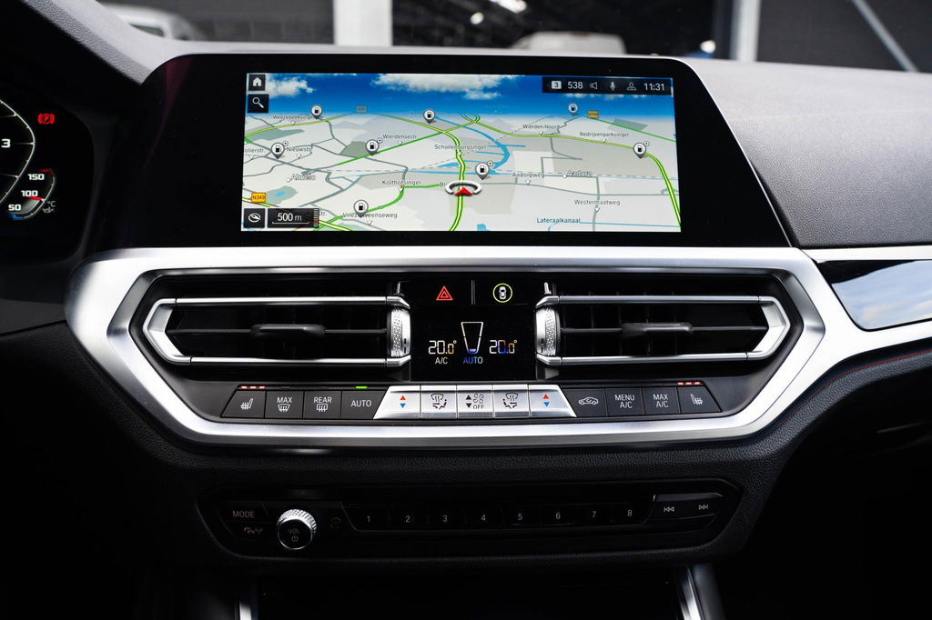 Dankzij het digitale dashboard in deze auto kan u de interface van uw cockpit personaliseren. Met de achteruitrijcamera ziet u precies wat er achter de auto gebeurt. Zoals u van zo'n jonge auto mag verwachten, zijn hier ook de geavanceerde remote services aanwezig. Simpelweg met een app op uw smartphone controleert u op afstand de status van de auto en bedient u diverse functies. Gemakkelijk en veilig is de spraakbediening voor het audio-installatiesysteem en het full map navigatiesysteem. Daarbij kunt u deze ook bedienen met de knoppen op het stuur. De audio-kwaliteit is geweldig, dankzij de DAB-ontvangst. Radarsensoren aan de achterkant van de auto zorgen voor een achteropkomend verkeer waarschuwing als de afstand tot het verkeer achter te klein wordt. Ook is de BMW uitgerust met: electronic climate control, sportstuur met schakelpaddels, regensensor, cruise control, automatisch dimmende buitenspiegels en centrale deurvergrendeling met afstandsbediening.