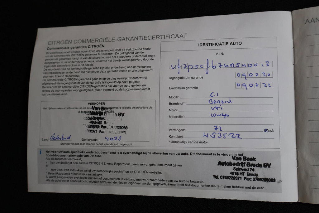 | Onderhoudsboekjes: | Ja, aanwezig |