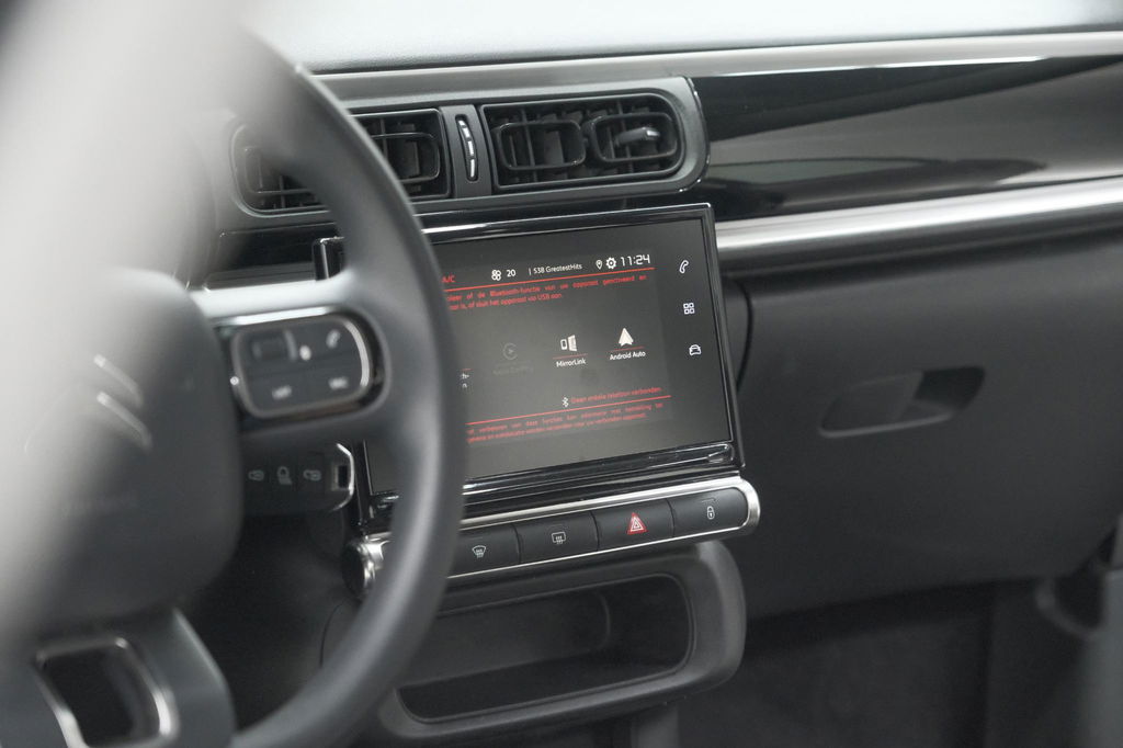 Gemakkelijk en veilig is de spraakbediening voor het audiosysteem. Daarbij kunt u het ook bedienen met de knoppen op het stuur. De audio-kwaliteit is geweldig, dankzij de DAB-ontvangst. Aan boord van deze Citroen C3 is een achteropkomend verkeer waarschuwing voor extra veiligheid. Met de automatische airconditioning selecteert u de gewenste temperatuur. Het systeem doet de rest. Soms heeft u meer parkeerruimte dan u denkt. Maar soms ook niet. De parkeersensoren vertellen precies hoeveel. In deze Citroen kunt u zich concentreren op het verkeer, terwijl de auto de omgeving voor u in de gaten houdt. Een automatisch inschakelbare verlichting zorgt dat de verlichting aangaat als het donkerder wordt - in tunnels bijvoorbeeld - en de regensensor schakelt de ruitenwissers in als het nodig is. U hoeft er niets aan te doen. Ook is de Citroen uitgerust met: cruise control, automatisch dimmende binnenspiegel, lederen stuur, centrale deurvergrendeling met afstandsbediening en boordcomputer.