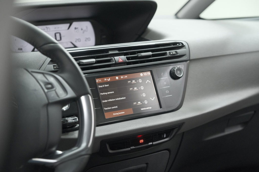 Pragmatisch en veilig als deze auto is, beschikt hij over diverse veiligheidssystemen. Bij de veiligheidssystemen van deze auto hoort ook de verkeersbord-detectie. Die leest tijdens het rijden als het ware met u mee en attendeert u op de significante verkeersborden langs en boven de weg. Deze Citroen C4 SpaceTourer blijft altijd alert. Zo wordt gebruik gemaakt van forward collision warning. Bij het mogelijke risico op een aanrijding met een voertuig voor u, slaat het systeem alarm. Vermoeid achter het stuur zitten vergroot de kans op een ongeval. Vermoeidheidsherkenning waarschuwt tijdig als u aan een rustpauze toe bent. De veiligheid van deze auto wordt verder verhoogd door hill hold functie, brake assist en bandenspanningcontrolesysteem.