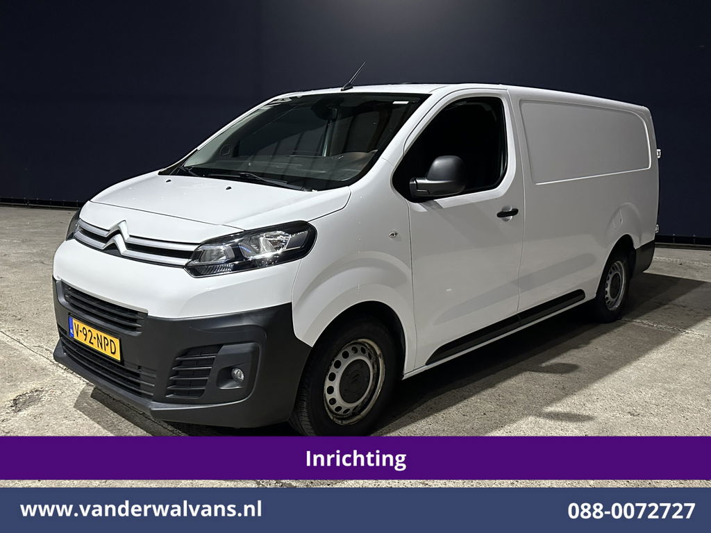 150pk sterke Citroën Jumpy L3H1 Euro6 met airconditioning, navigatie, cruisecontrol en professionele inrichting. Geheel dealer onderhouden en tevens uitgevoerd met 2500kg trekhaak, Apple Carplay, Android Auto, parkeersensoren en bluetooth telefoonvoorbereiding.