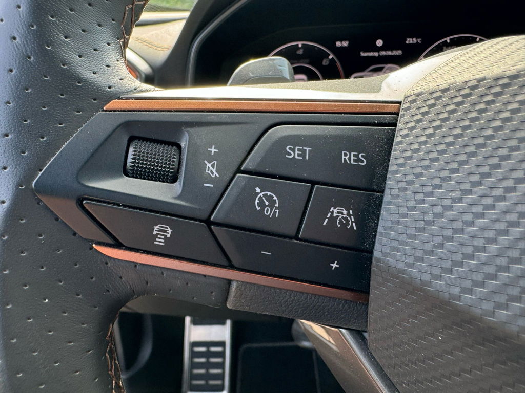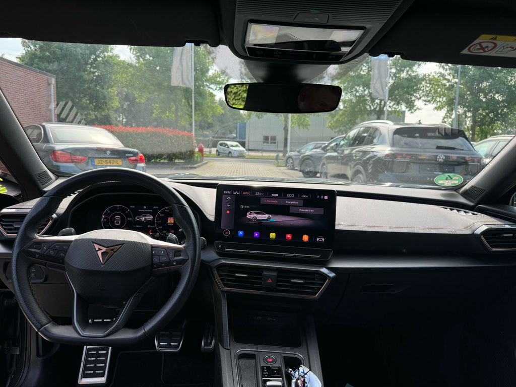 Met zijn inventieve techniek is de hybride CUPRA Formentor tegelijk comfortabel en zuinig met brandstof. Rijden op brandstof én elektriciteit? Dat kan, met de hybride motor van deze CUPRA Formentor. De elektromotor ondersteunt of neemt het deels over van de brandstofmotor als dat uitkomt. Scheelt lekker in de kosten! U zit er altijd warmpjes bij door de stoelverwarming. De bagageruimte is toegankelijk via een comfortverhogende elektrische achterklep. Xenonverlichting zorgt voor een heldere witblauwe lichtkleur en een scherp lichtbeeld. In deze CUPRA profiteert u onder andere ook van: 19 inch lichtmetalen velgen, Full LED koplampen, adaptief dempingsysteem, zwarte hemelbekleding, donker getint glas achter en in delen neerklapbare achterbank.