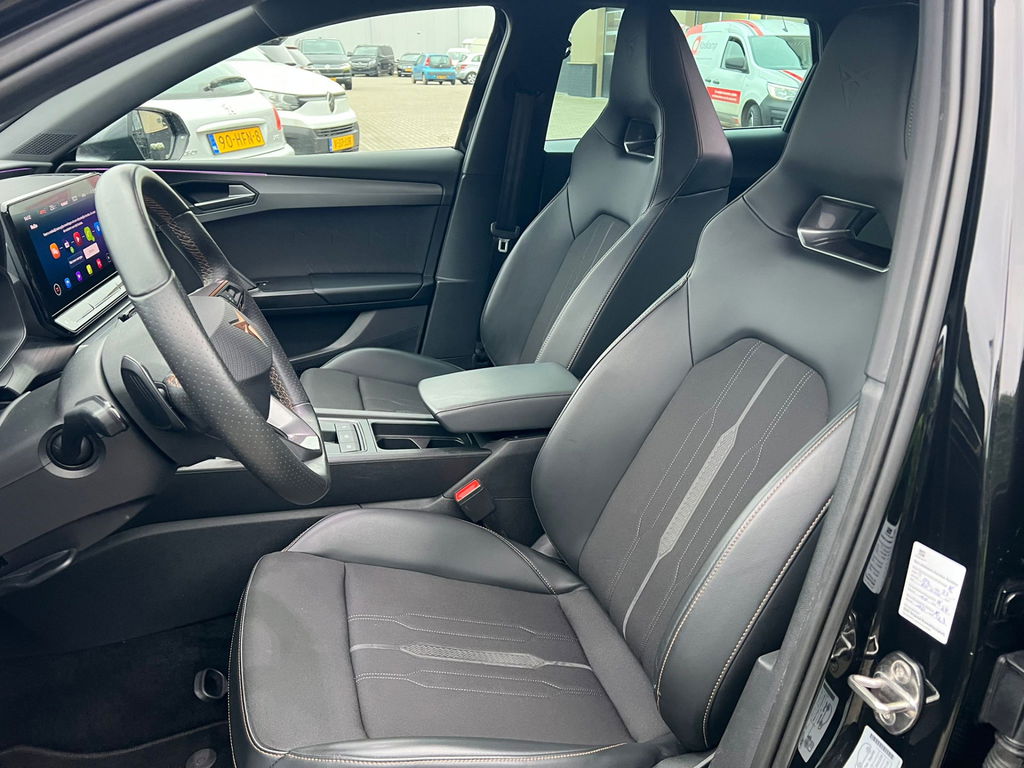 Pragmatisch en veilig als deze auto is, beschikt hij over diverse veiligheidssystemen. Bij de veiligheidssystemen van deze CUPRA hoort ook de verkeersbord-detectie. Die leest tijdens het rijden als het ware met u mee en attendeert u op de significante verkeersborden langs en boven de weg. Het Lane-keeping systeem registreert permanent of u binnen de lijnen van de rijstrook blijft; dwaalt u onbedoeld af, dan waarschuwt het systeem en corrigeert de koers. Forward collision warning helpt u om kop-staart aanrijdingen te voorkomen. De auto is ook uitgerust met dodehoekdetectie, hill hold functie, vermoeidheidsherkenning, autonoom remsysteem en bandenspanningcontrolesysteem.