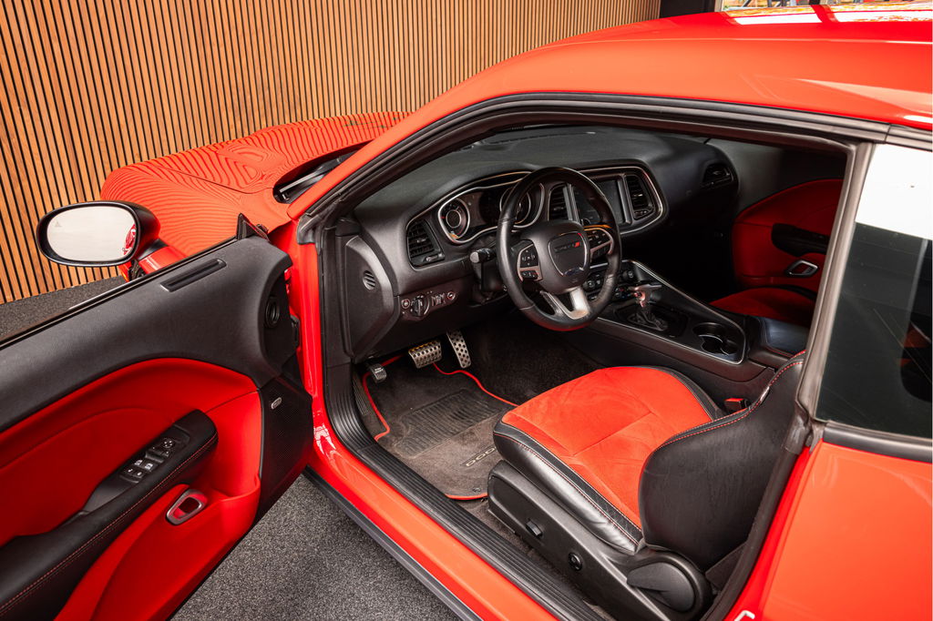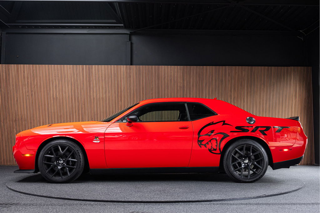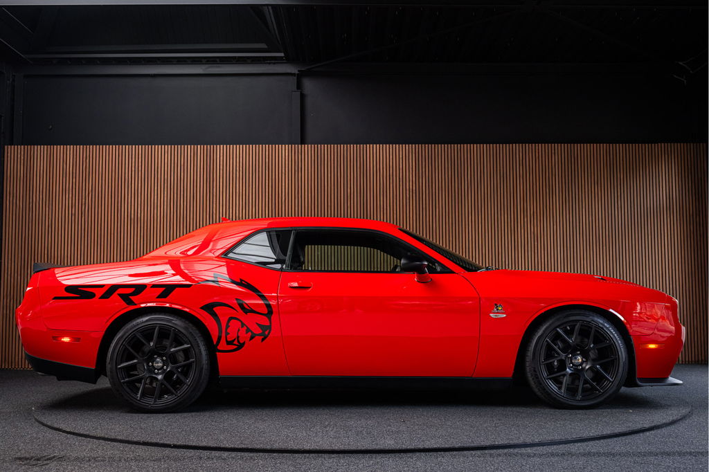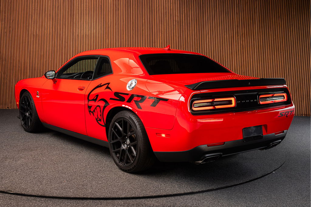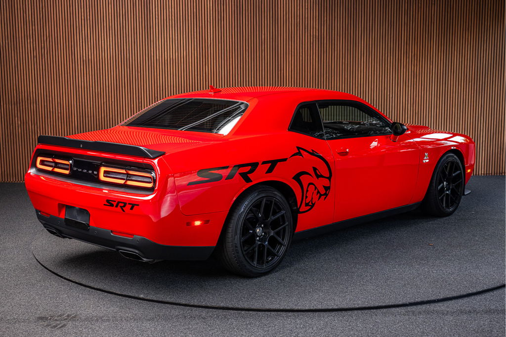 Dit betreft een unieke Dodge Challenger 6.4 V8 SRT SCAT PACK 492pk.