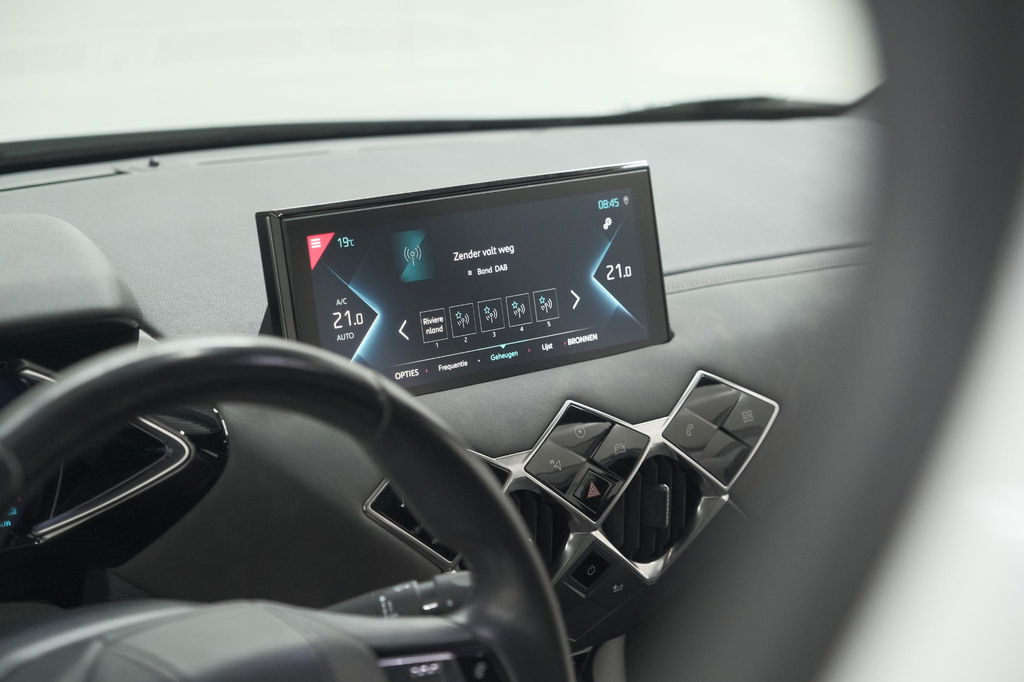 Het digitale dashboard is een perfecte bijrijder. Alles benodigde informatie is permanent zichtbaar of opvraagbaar. Zodra u naar de 'R' schakelt, gaat de achteruitrijcamera in werking en heeft u een perfect zicht op alles wat zich achter de auto afspeelt. Wat wilt u onderweg horen? Er is volop keus, dankzij bluetooth. Het full map navigatiesysteem is met het audiosysteem gecombineerd. Met automatische airconditioning hoeft u alleen de gewenste temperatuur in te stellen. Het systeem doet de rest. Het hoort bij een intelligente auto als deze dat hij zelf in staat is om zijn omgeving in de gaten te houden. Dat doet deze DS met een automatisch inschakelbare verlichting en een regensensor. Extra opties op deze auto zijn: dashboard met spraakbediening, DAB ontvangst, cruise control, automatisch dimmende binnenspiegel, lederen stuur en centrale deurvergrendeling met afstandsbediening.
