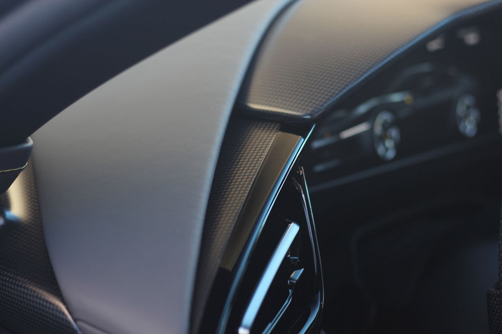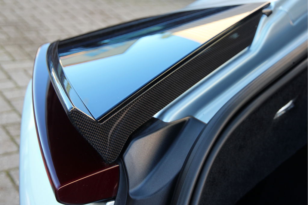 Interieur: Het interieur is verrijkt met diverse carbon-details, zoals het Carbon/LED-stuurwiel, de instaplijsten, onderzijde van de deuren en zelfs de hoedenplank.