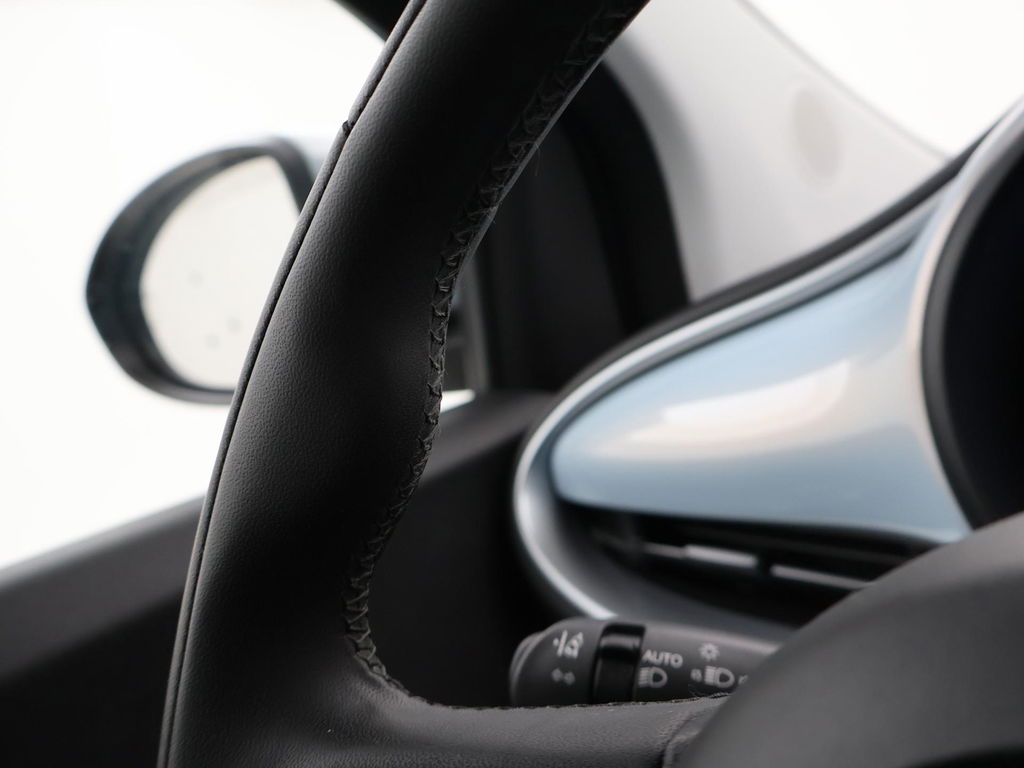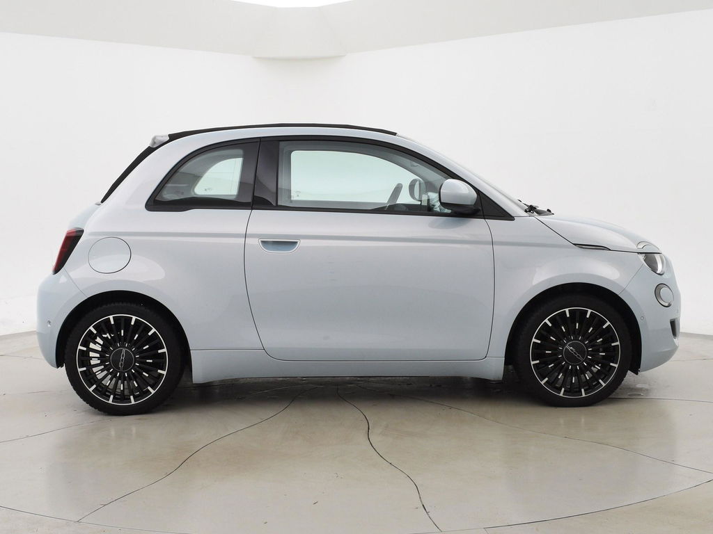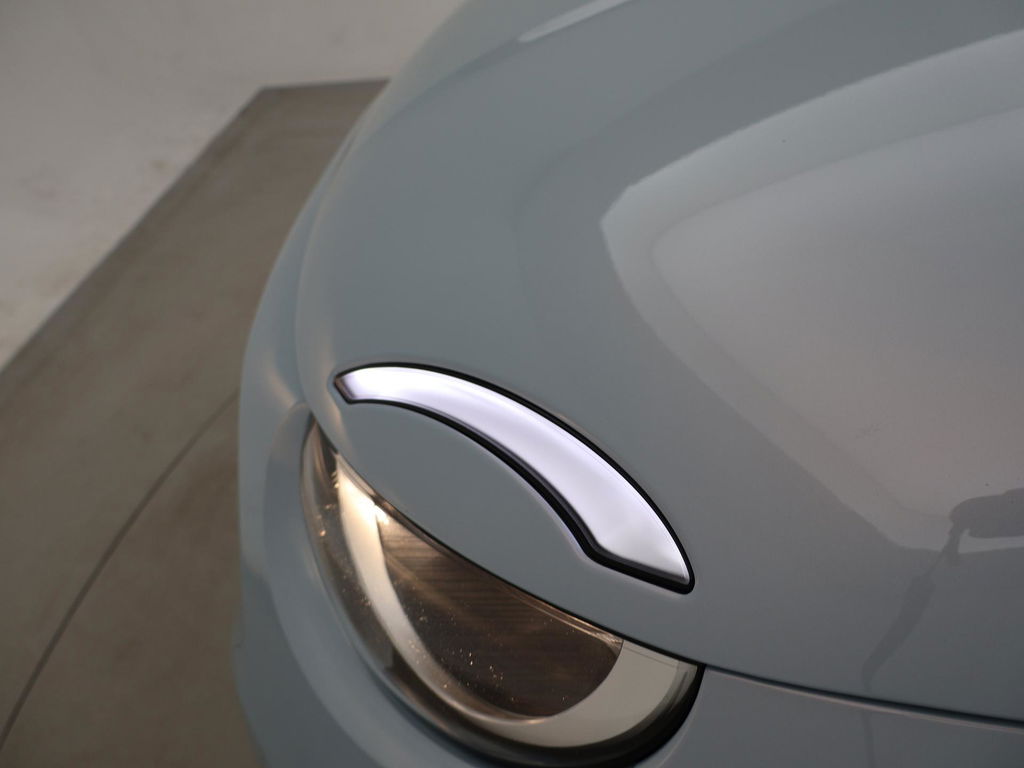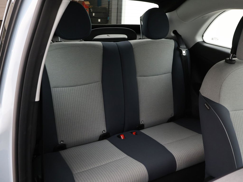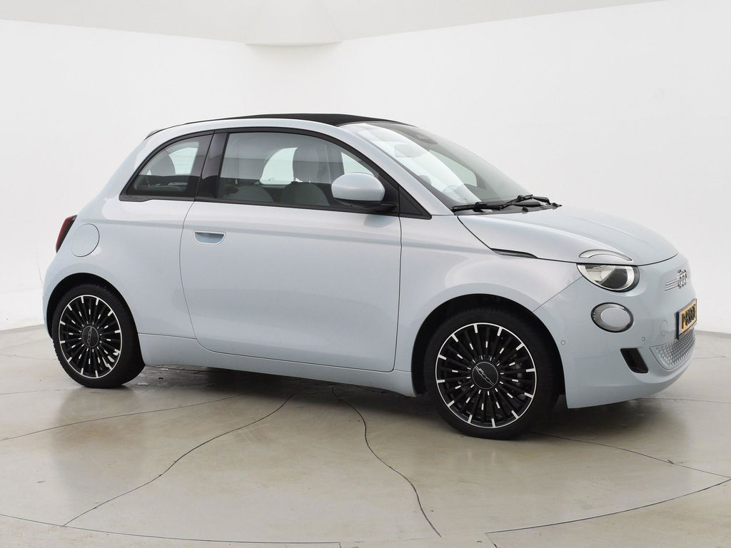 Fiat 500e cabrio / 500C 42 kWh in de super gave kleur Celestial Blue, Zeer compleet met breedbeeld navigatie + digitale cockpit met navigatie kaartweergave, Stoelverwarming, Draadloze Apple Carplay appstreaming, 17 inch lichtmetalen velgen, Achteruitrijcamera, Climate control, Leder stuurwiel, LED dagrijverlichting, LED achterlichten, Bluetooth, DAB+ digitale radio, Cruise control.