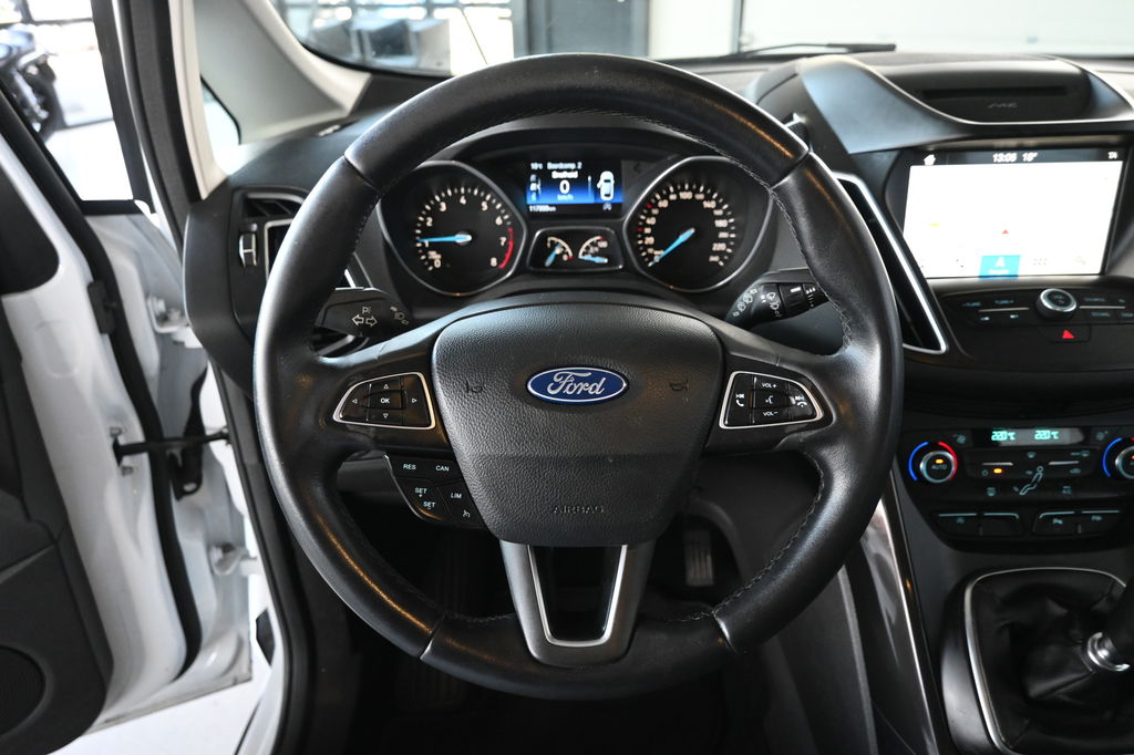 Beste route, verwachte aankomsttijd: uw eigen navigatiesysteem vertelt u alles! Tot de standaard uitrusting van deze auto hoort ook automatische airconditioning. Voor het ware fingerspitzengefühl zorgt de audiobediening op het stuur. U kunt bij het inparkeren natuurlijk niet aan alle kanten ogen hebben. Daarom is deze Ford C-Max voorzien van parkeersensoren! Maximumsnelheid? Even de cruise control instellen en u blijft perfect binnen de marges. Deze Ford is voorzien van centrale deurvergrendeling met afstandsbediening, boordcomputer en verstelbaar stuur.