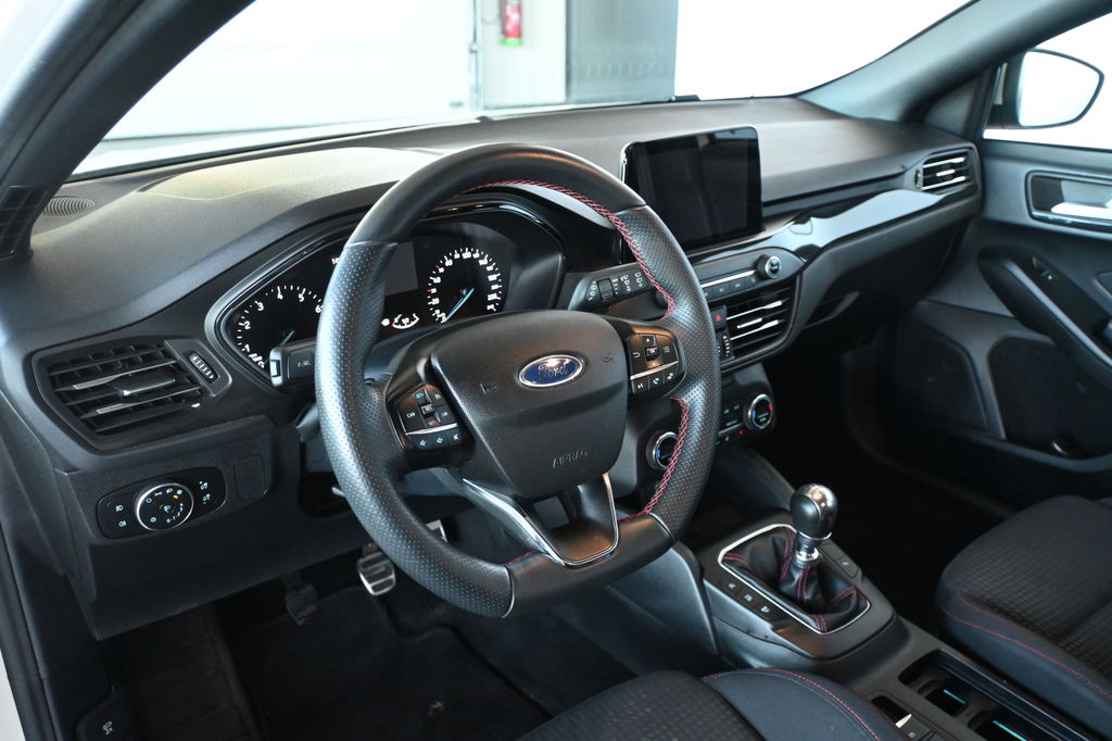 Autojournalisten zijn het er unaniem over eens. De Ford Focus Wagon behoort tot de best sturende auto's van zijn klasse. Ook deze Focus Wagon heeft de uitmuntende rijeigenschappen die u van een Ford mag verwachten. In deze auto vindt u een benzinemotor en een handgeschakelde zesversnellingsbak. De verwarmbare voorstoelen zijn een heerlijke extra optie, waarmee u uzelf en uw bijrijder een groot plezier doet. Voor het pittige uiterlijk én goed gesteund zitten zorgen de sportstoelen. Nooit meer koude handen of koude vingers in de auto. Stuurverwarming zorgt ervoor dat het stuur behaaglijk warm aanvoelt. Ook 17 inch lichtmetalen velgen, LED koplampen, sportonderstel, dakspoiler, in delen neerklapbare achterbank en LED-achterlichten zijn aan boord.