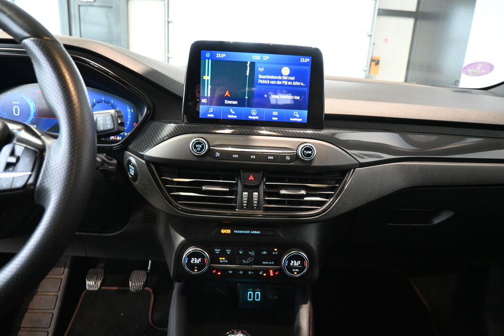 Zoals u mag verwachten van deze Ford Focus Wagon is hij uitgerust met een reeks aan actieve veiligheidssystemen. De sensor van het forward collision warning-systeem registreert permanent de afstand tot voorliggers en grijpt in als een botsing dreigt. Verder is deze auto uitgerust met hill hold functie, brake assist en bandenspanningcontrolesysteem.