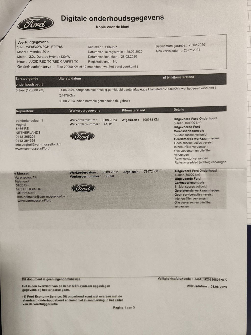 | Onderhoudsboekjes: | Ja, aanwezig |