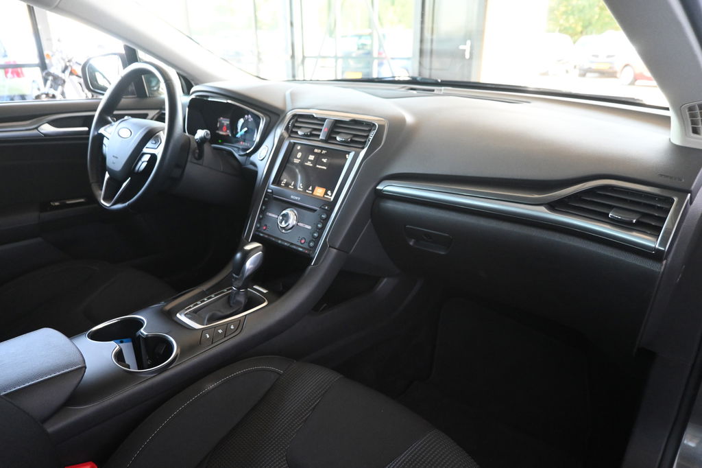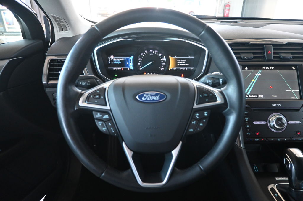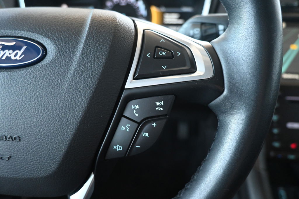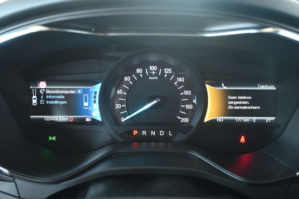 Handig en veilig: Connected Services. Alle vitale functies en data van de auto checkt u via de app op uw smartphone. Het high performance audiosysteem produceert krachtige bassen en heldere hoge tonen. De automatische airconditioning zorgt onder alle omstandigheden voor een prettige temperatuur. Geen parkeervak is te klein dankzij de assistentie van de parkeersensoren. Het luxeniveau in deze Ford is niet alleen gericht op comfort, maar ook op uw veiligheid. Tal van sensoren helpen u om de omgeving in de gaten te houden. De automatisch inschakelbare verlichting zorgt dat automatisch de verlichting wordt ingeschakeld als het donker wordt, wat bijvoorbeeld in tunnels erg handig is. En de regensensor zet de ruitenwissers aan zonder dat u eraan hoeft te denken. Ook dashboard met spraakbediening, full map navigatiesysteem, DAB ontvangst, cruise control, keyless entry en automatisch dimmende binnenspiegel zijn aan boord.