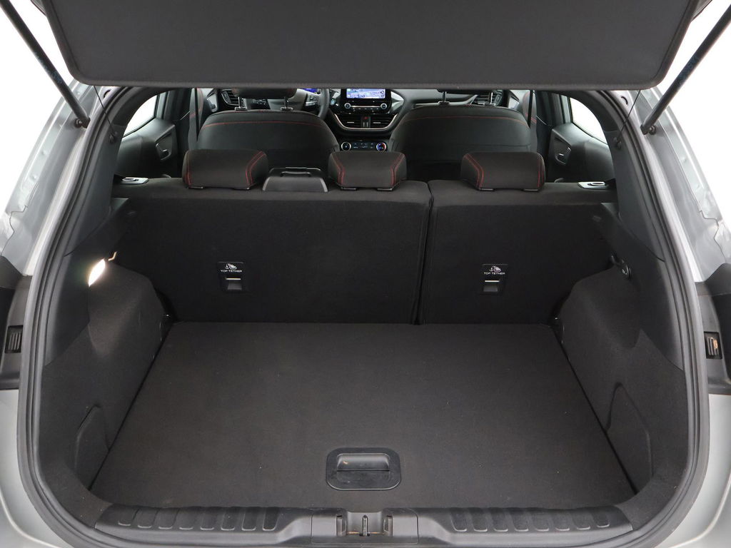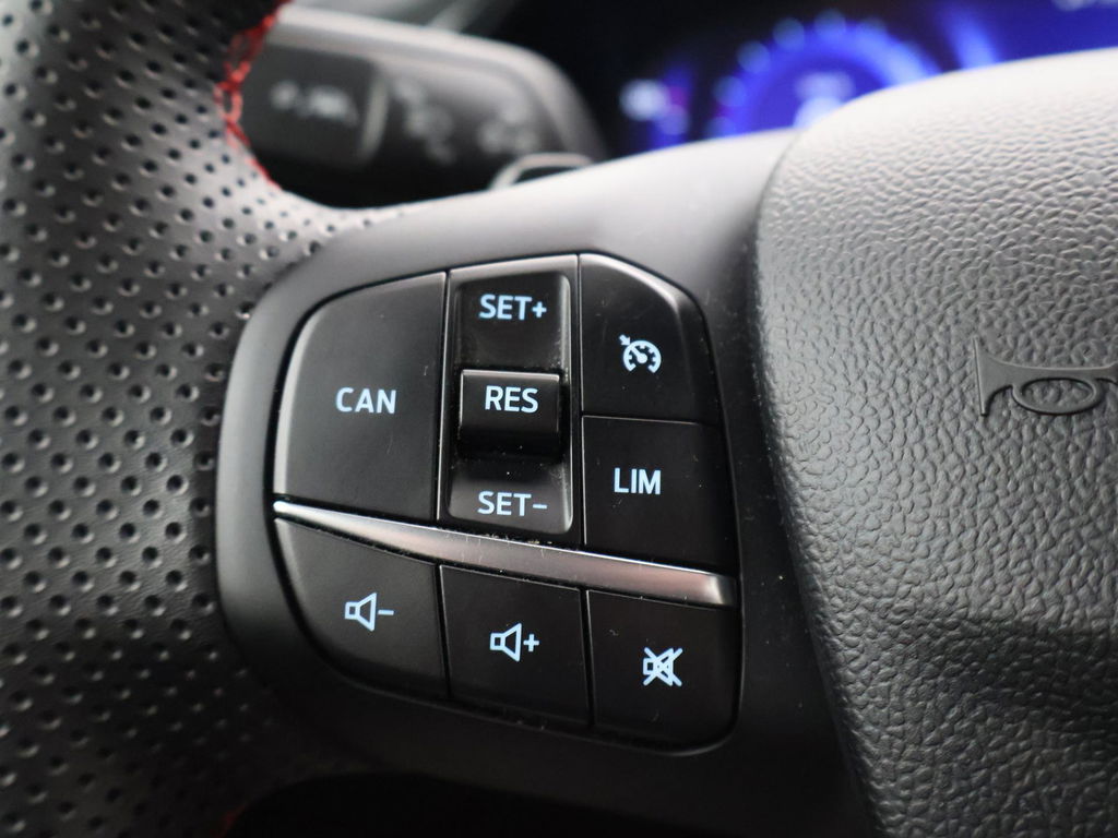 ST-LINE uitvoering, BTW verrekenbaar, 1.0 EcoBoost hybrid automaat, Full LED koplampen, Digitale cockpit, Navigatie, Apple Carplay / Android Auto appstreaming, 17 inch lichtmetalen velgen, LED achterlichten, Leder sportstuurwiel, Cruise control, Bluetooth met audiostreaming, Zwart interieur met rood stiksel, Verkeersbordenherkenning, DAB+ digitale radio, Airco, Parkeersensoren voor en achter met inparkeerhulp, Prijs is exclusief BTW.
