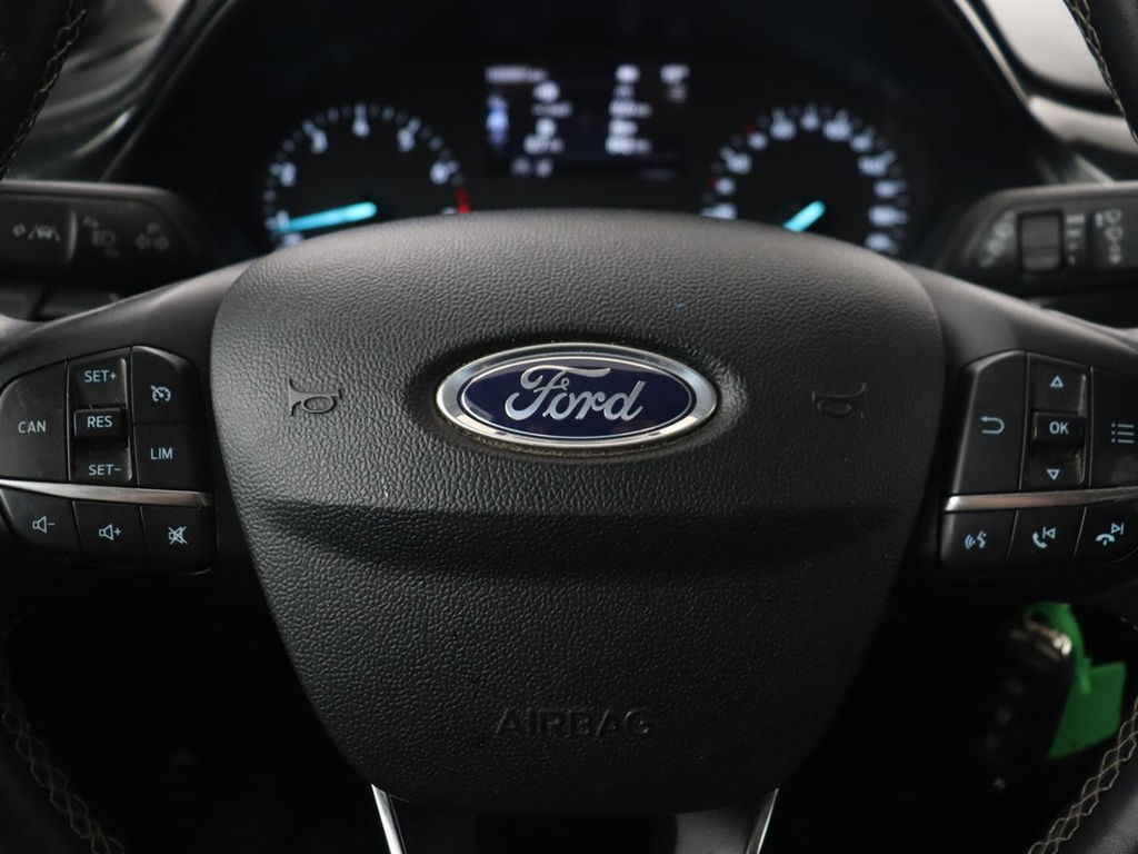 De ingebouwde Connected Services vertellen u via de app alles over de status van de auto. Locatie, onderhoudsstatus, brandstofpeil en nog veel meer! Voor de veiligheid op de weg is het goed dat u uw ogen op de weg kunt houden en uw handen aan het stuur. Want het audiosysteem, met DAB-ontvangst, en het full map navigatiesysteem bedient u vanaf het stuurwiel en met spraakbediening. Is uw smartphone geschikt voor snoerloos opladen? Dan zorgt de draadloze oplaadmogelijkheid voor telefoons weer voor een volle accu zonder snoeren en stekkers. De auto is ook uitgevoerd met automatische airconditioning. Soms heeft u meer parkeerruimte dan u denkt. Maar soms ook niet. De parkeersensoren vertellen precies hoeveel. De uitrusting van deze Ford is met regensensor, cruise control, automatisch dimmende binnenspiegel, lederen stuur, centrale deurvergrendeling met afstandsbediening en boordcomputer behoorlijk compleet.