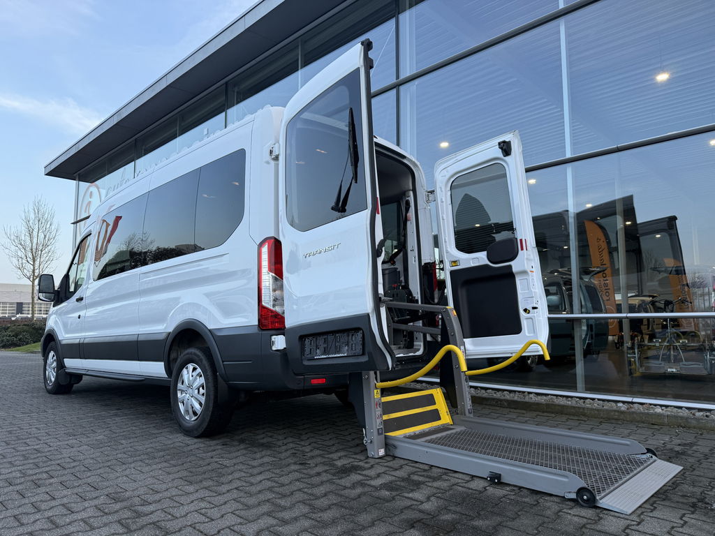 Nieuw binnen: deze mooie ruime en zeer goed onderhouden Ford Transit 5+1 Rolstoelbus / Personenbus L2H2 uit 2020 met nog maar 117 dkm. op de teller welke o.a. is voorzien van een volledig aangepaste vloer met airline-rails die geschikt is gemaakt voor het vervoer van 4 rolstoelen of nog een 6-tal passagiersstoelen. Deze stoelen kunnen in een handomdraai worden verplaatst of verwijderd en daarnaast is hij uitgerust met een volautomatische rolstoellift met groot platform waarmee ieder type rolstoel of scootmobiel comfortabel en veilig vervoerd kan worden. Ook is er bij de zijschuifdeur een extra handgreep aanwezig wat maakt dat deze prachtige bus makkelijker toegankelijk is. Door zijn flexibele indeling is deze nieuwe Ford Transit voor vele doeleinden geschikt en is prima inzetbaar is bij bijvoorbeeld uw zorginstelling of taxibedrijf. Verder beschikt deze mooie Ford over fijne opties zoals o.a. extra getint glas, audio-systeem, regensensor, boordcomputer, elektrische ramen en buitenspiegels, centrale deurvergrendeling met afstandsbediening, voorruitverwarming, mistlampen, parkeersensoren voor en achter en nog heel veel meer... Heeft u interesse in deze of een andere rolstoelbus of rolstoelauto? Bel of app ons dan voor meer informatie op nummer 06-27392718 en maak een afspraak! (Meer foto's volgen zo spoedig mogelijk)