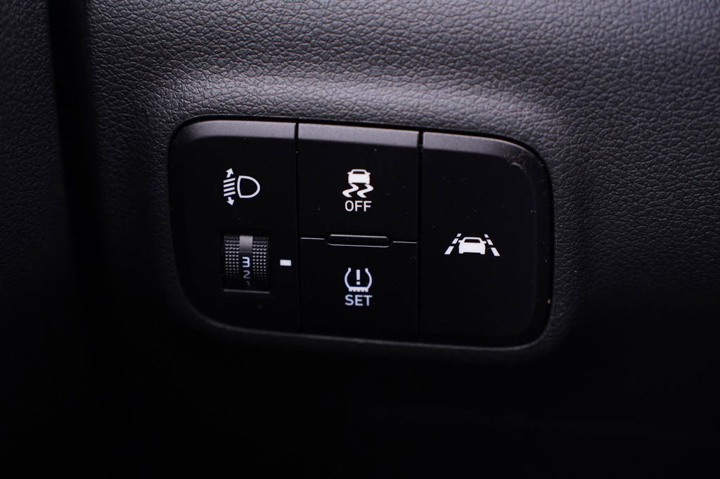 Aan boord van deze Hyundai houden verschillende geavanceerde systemen voor u de weg in de gaten. Ze waarschuwen u voor noodsituaties en kunnen in een aantal gevallen ook zelf ingrijpen. Het Lane-keeping systeem garandeert dat u zich niet onverhoeds buiten de lijnen van de rijstrook begeeft. Botsingen met een voorligger gebeuren relatief vaak. De forward collision warning slaat tijdig alarm als dat risico ontstaat, zodat u kunt ingrijpen. Om te voorkomen dat u tijdens lange ritten achter het stuur in slaap valt, is deze auto voorzien van vermoeidheidsherkenning. De auto is ook uitgerust met hill hold functie, autonoom remsysteem en bandenspanningcontrolesysteem.