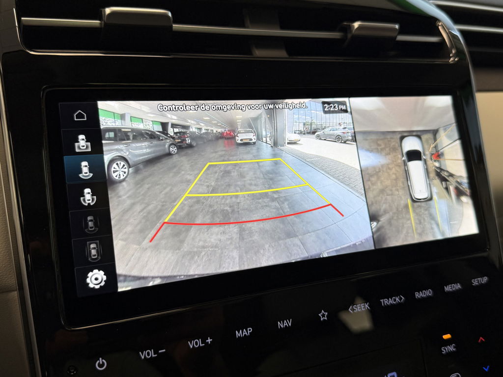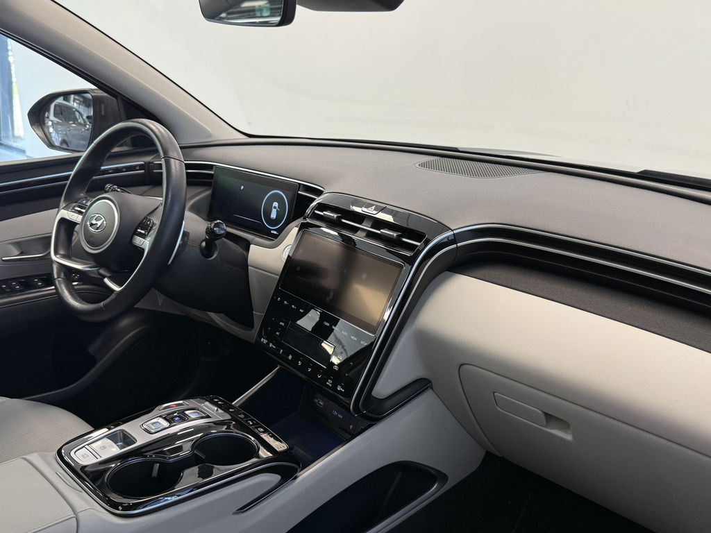 Voor deze Hyundai Tucson moet u snel zijn, want die gaat aandacht krijgen. Net binnen, maar daar blijft-ie niet lang! De aanwezige hybride motor is een slimme extra. Tijdens het rijden en remmen laadt de accu bij, zodat de elektromotor de brandstofmotor kan ondersteunen of het zelfs helemaal overnemen. Dat scheelt in kosten! De verwarmbare voorstoelen zijn een weldaad voor rug en schouders. Licht en lucht komen onbelemmerd binnen als het elektrisch bediende glazen panoramadak met één druk op de knop wordt geopend. De elektrische achterklep opent met een druk op de knop, zodat u gemakkelijk toegang heeft tot de bagageruimte. Ook achterin heerst een luxe sfeer, vanwege de verwarmde achterbank. Tot de voorzieningen van deze auto behoren 19 inch lichtmetalen velgen, LED koplampen, donker getint glas achter, in delen neerklapbare achterbank, LED-achterlichten en verstelbare lendensteunen.