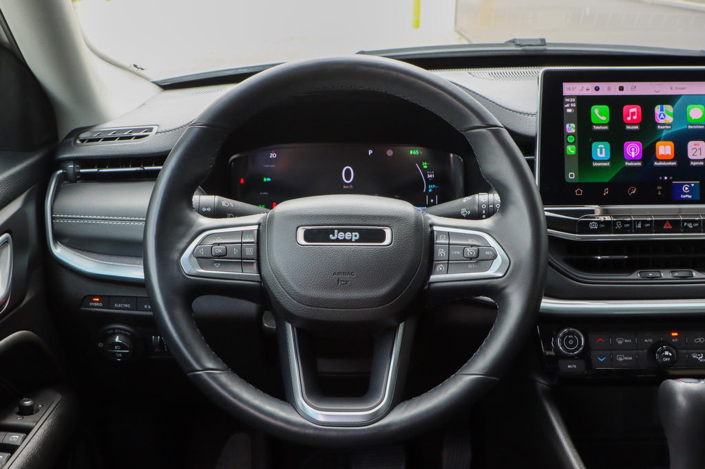 In het moderne verkeer hebt u achter het stuur van de Jeep Compass altijd de controle. Deze auto komt uit 2022. Op de teller van deze auto staat slechts 23448 kilometer. Het is een hybride, daardoor is de auto zuinig met brandstof. Veel leuke extra's heeft deze auto. Om maar wat te noemen: de elektrisch bedienbare achterklep en het stijlvolle lederen interieur. Op zelfs de koudste ochtend biedt de stoelverwarming een heerlijk welkom. Wind, sneeuw, hagel, regen... allemaal vergeten als u het verwarmd stuurwiel in handen heeft. Tot de uitrusting behoren ook 19 inch lichtmetalen velgen, LED koplampen, trailer assistent, extra getint glas, in delen neerklapbare achterbank en LED-achterlichten.