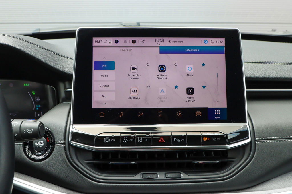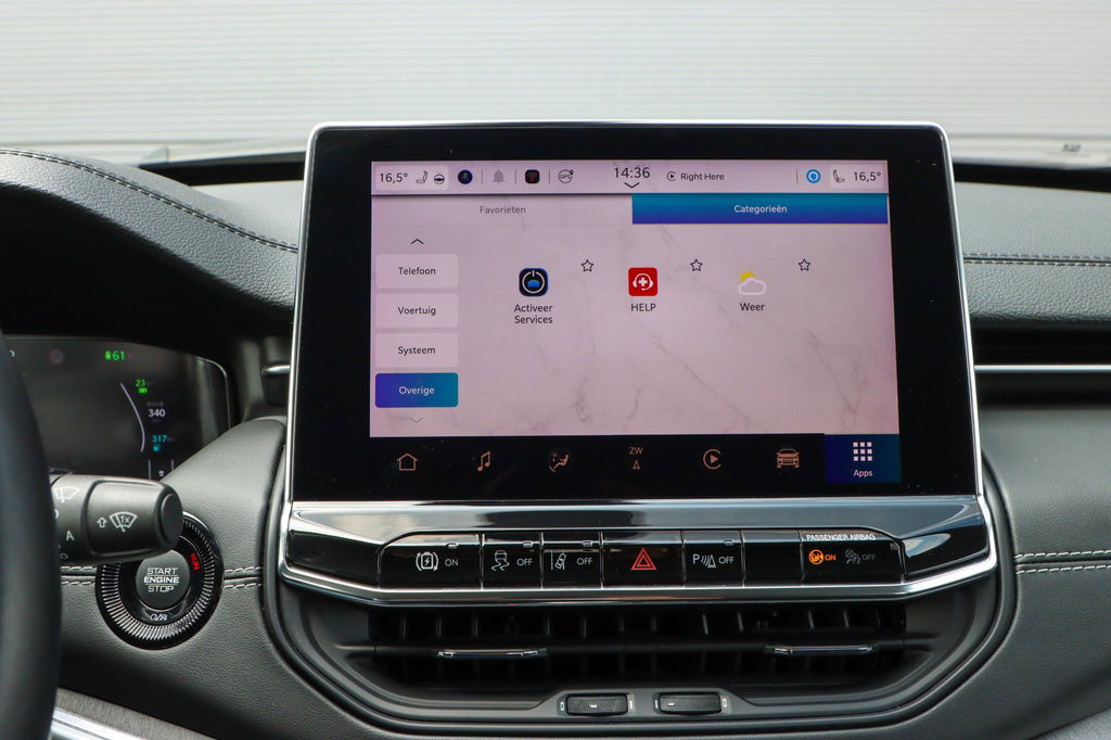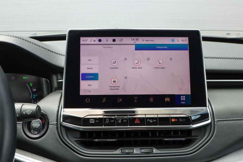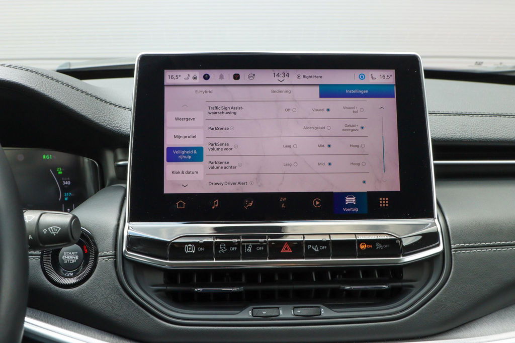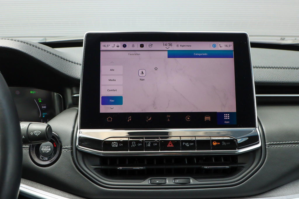 Met de nieuwste technologieën aan boord is deze Jeep in staat om zelf te reageren op potentieel gevaarlijke situaties op de weg. Verkeersborddetectie herkent tijdelijke en permanente verkeersborden langs en boven de weg. Het Lane-keeping systeem zorgt dat u mooi binnen de lijntjes blijft. Ongemerkt buiten de rijstrook komen is er niet meer bij. Vermoeidsheidsherkenning neemt tekenen van vermoeidheid waar bij de bestuurder. Het systeem voorkomt dat er daardoor ongelukken gebeuren. Ook helpen het hill hold functie, frontale botsbescherming en bandenspanningcontrolesysteem, uw rit tot een veilige rit te maken.