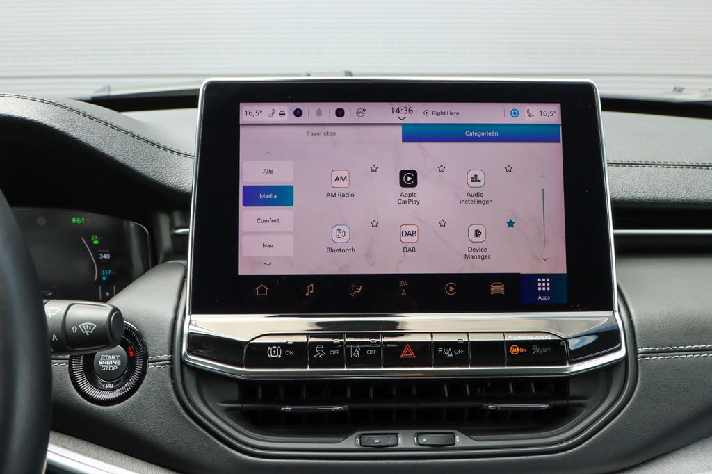Duik in de digitale wereld van mobiliteit waar alles wat u nodig heeft voor een comfortabele en veilige rit, wordt geprojecteerd op het digitale dashboard. Ongelukken of parkeerschade? Dat gebeurt u niet meer, met de achteruitrijcamera. Met adaptive cruise control houdt de auto zelfstandig afstand tot uw voorligger. Een veiligheidsverhogende optie waarmee u comfortabel onderweg bent. Communiceren met uw auto? Dat gaat via remote services. Met uw smartphone maakt u waar dan ook contact om allerlei functies te checken of te activeren. Deze Jeep is voorzien van spraakbediening voor het full map navigatiesysteem en voor het audiosysteem met DAB-ontvangst. Maar u kunt ook de knoppen op het stuur gebruiken. Ook automatische airconditioning, draadloos opladen, regensensor, keyless entry, automatisch dimmende binnenspiegel en isofix-aansluiting horen tot de voorzieningen op deze auto.