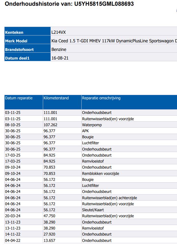 | Onderhoudsboekjes: | Ja, aanwezig |