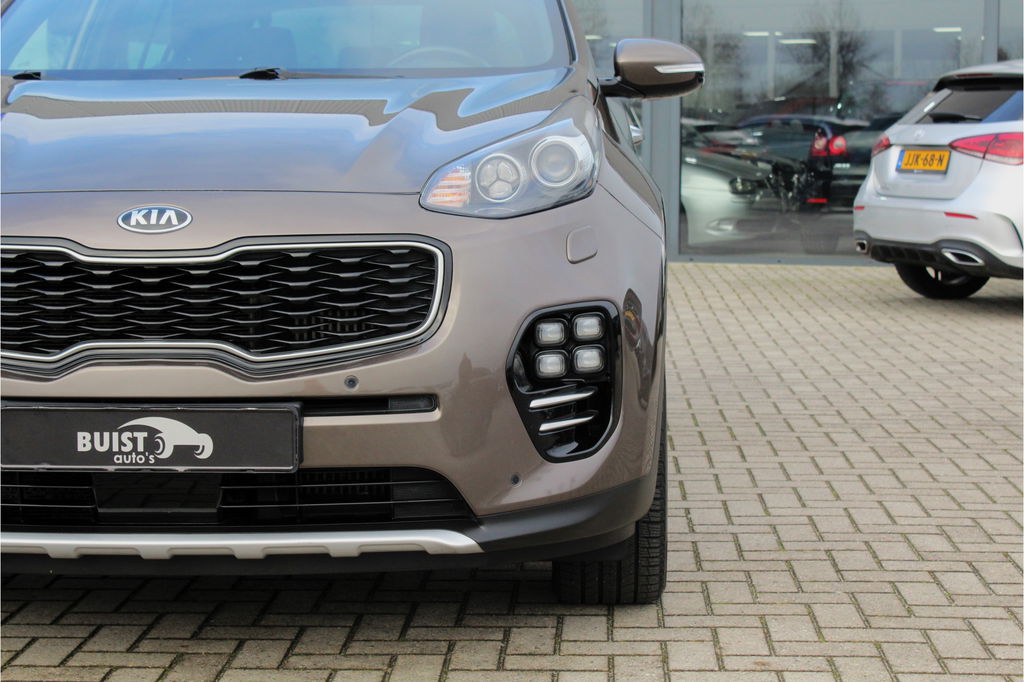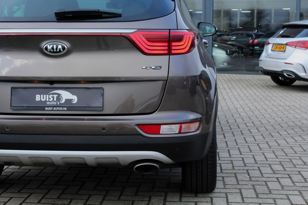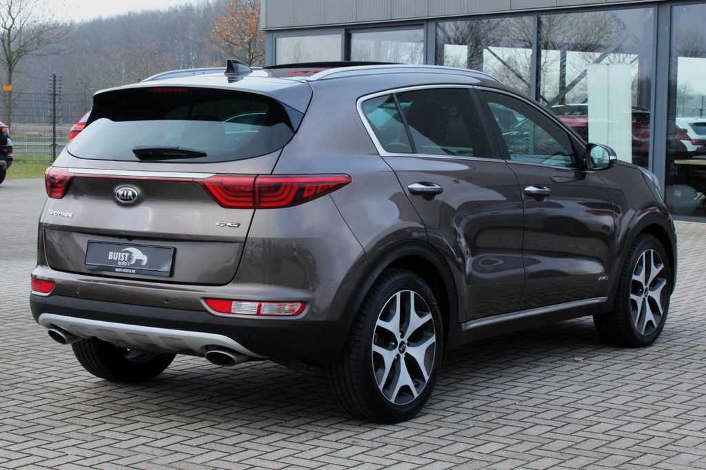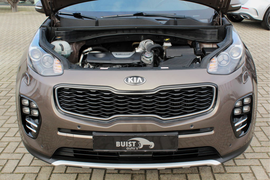 Fabrikant: Buist Auto's Steenkamp 13 9461VC GIETEN, NL 0592330803 http://www.buist-autos.nl info@buist-autos.nlBomvolle Kia Sportage met de 177pk sterke 1.6 TGDI motor en in de meest luxe GT Line PlusLine uitvoering met 4WD (1600kg trekgewicht) en origineel slechts 92662km rechtstreeks van de 2e eigenaresse! Deze Sportage is o.a. voorzien van een elektrisch panoramadak, xenon koplampen en LED achterlichten, 19" lichtmetalen velgen, lederen bekleding, elektrische stoelverstelling, stoelverwarming en stoelventilatie, verwarmd stuurwiel, achterbankverwarming, navigatie, bluetooth, DAB, JBL audio, climate control, cruise control, elektrisch pakket, PDC voor en achter, achteruitrijcamera, keyless entry, enz. Origineel Nederlandse en volledig dealeronderhouden auto van de 2e eigenaar met 2 sleutels, gestempelde boekjes en NAP! De prijs voor deze mooie vierwielaangedreven Sportage inclusief onderhoudsbeurt volgens schema, nieuwe APK en 12 maanden garantie t.w.v. € 1.295,- is € 21.245,-.