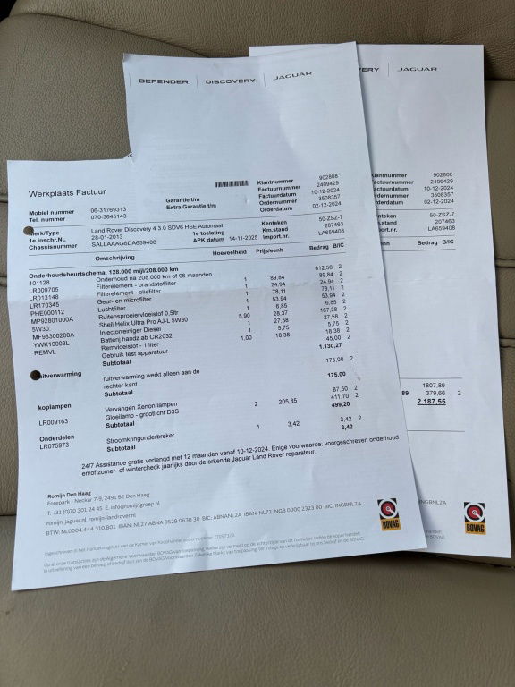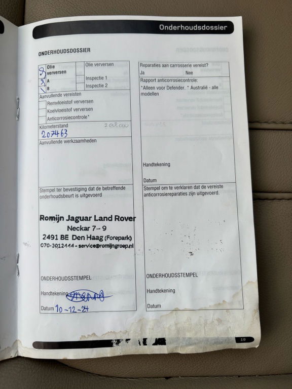 Laatste onderhoudsbeurt uitgevoerd bij 207.000 KM ( Romijn Land Rover )