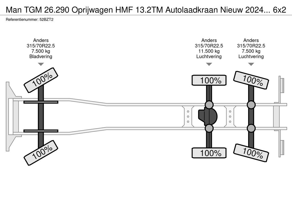 Achteras 2: Max. aslast: 7500 kg; Meesturend; Bandenprofiel links: 100%; Bandenprofiel rechts: 100%; Vering: luchtvering