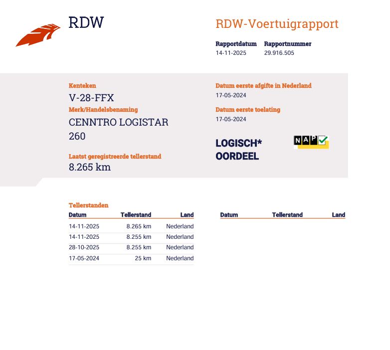 | Uitvoering: | Cenntro - WLPT 193 KM - 100 % Elektrisch |