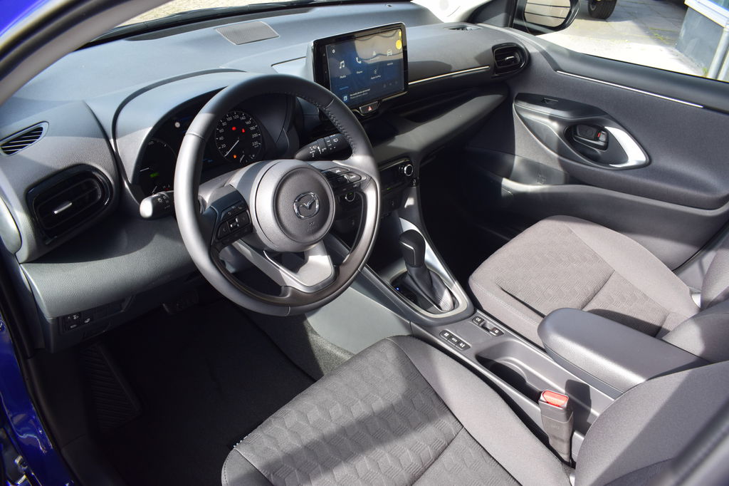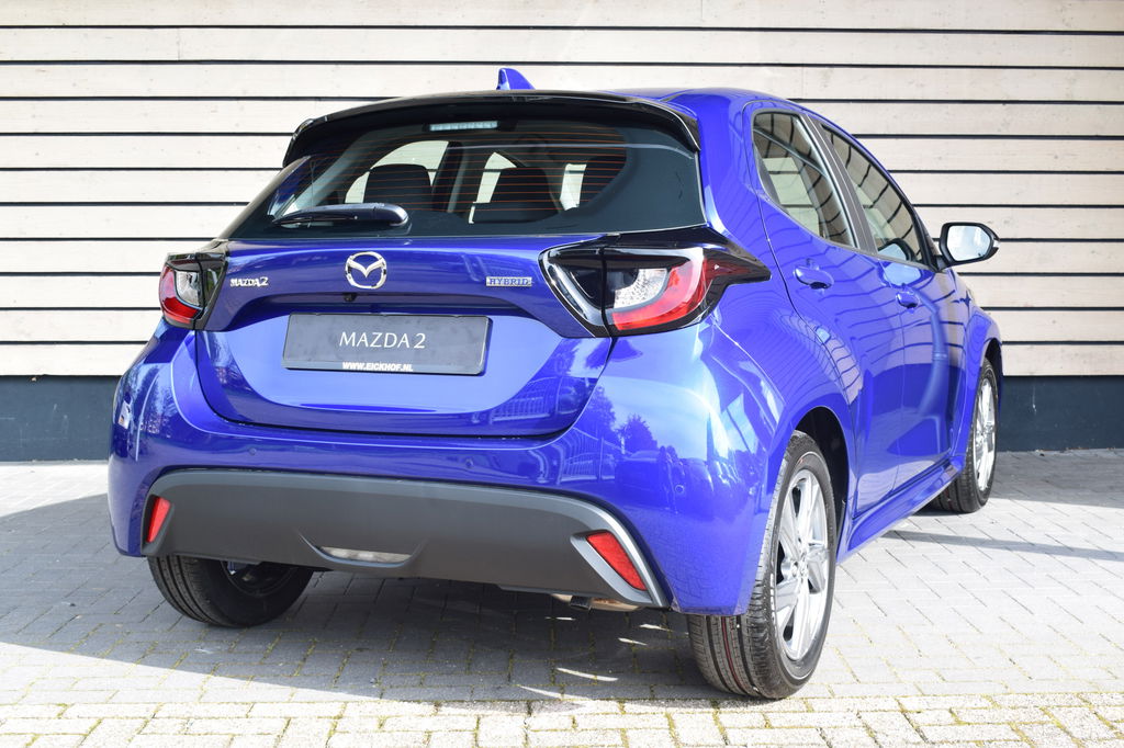 De Mazda 2 Hybrid, zoals dit exemplaar, valt op door de combinatie van zijn ingetogen design, zijn ruime interieur en zijn uitstekende rijeigenschappen. Het gaat hier om een nieuwe auto, hij is nu direct leverbaar. Deze Mazda 2 Hybrid heeft in feite twee motoren: een voor benzine en een elektronische. Deze hybride oplossing biedt het beste van beide! Tijdens gure dagen is het prettig zitten in de verwarmbare voorstoelen. Pak aan, 't is winter! Zo'n verwarmd stuurwiel is dan bijzonder prettig! U wordt in deze auto ook getrakteerd op 16 inch lichtmetalen velgen, elektrisch inklapbare buitenspiegels, in delen neerklapbare achterbank, LED-achterlichten, verstelbare lendensteunen en elektrisch bedienbare ramen achter.