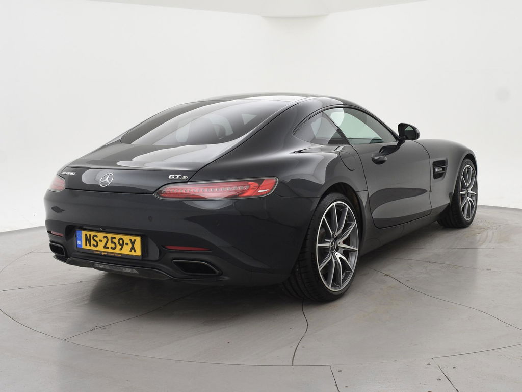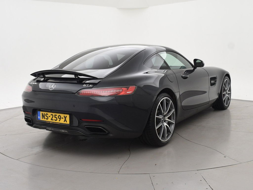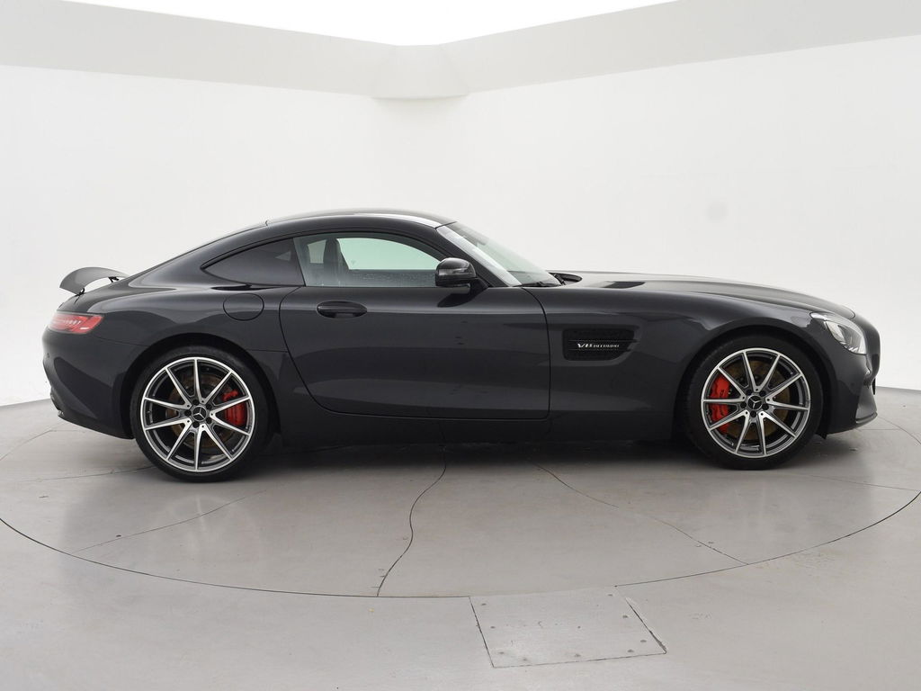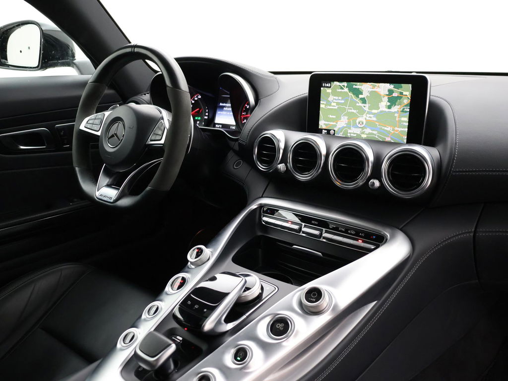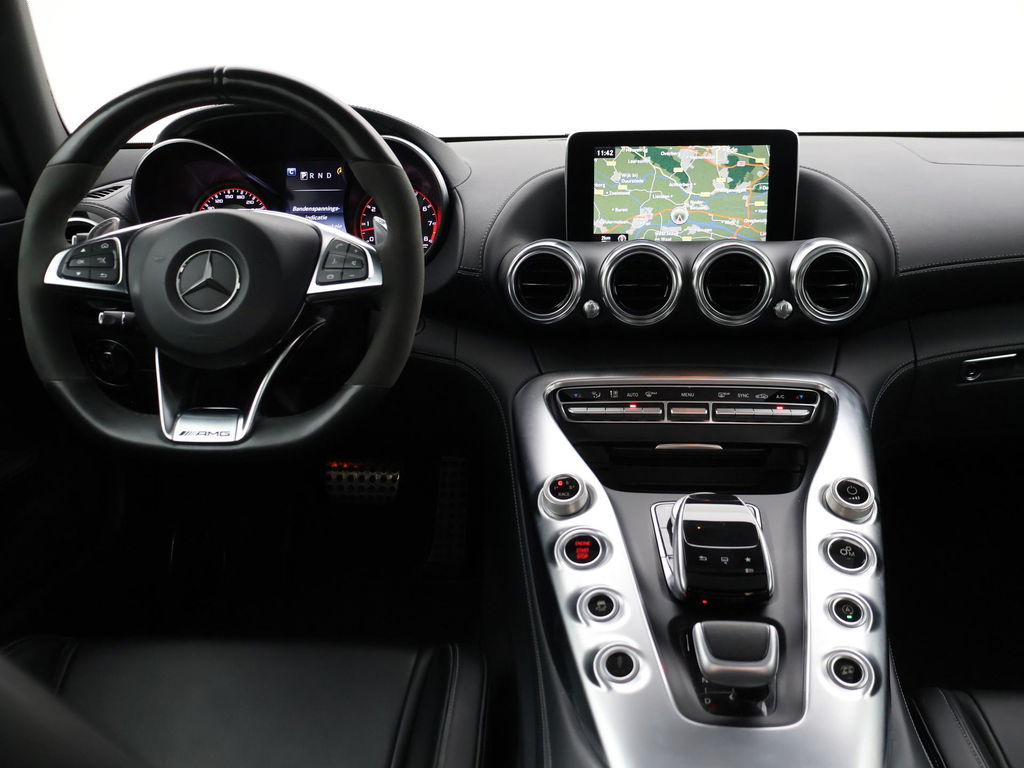 EU verantwoordelijke: Mercedes-Benz Nederland B.V. Ravenswade 4 3439 LD Nieuwegein, NL 0302091000 www.mercedes-benz.nl cs.nld@cac.mercedes-benz.comAMG GT 4.0 V8 Bi-Turbo 510 PK, S uitvoering dus 510 PK in plaats van de standaard 476 PK uitvoering wat ook te zien is aan de tellerklok die tot 360 km/h aangeeft in plaats van 320 km/h, Speciale Manufaktur kleur: Magnietzwart metallic (kleur 183), deze is zeer donkergrijs, tegen zwart aan. Complete uitvoering met Panoramadak, Burmester premium sound, AMG Performance seats met zwart nappaleder exclusief interieur, Alcantara/nappa leder sportstuur, Sportuitlaat met elektronisch regelbare kleppen, Zwarte hemelbekleding, Elektrische stoelverstelling met geheugen links en rechts, Elektrisch verstelbaar stuurwiel, Stoelverwarming, Achteruitrijcamera, Parkeersensoren, Alarm klasse 3, Bluetooth met audiostreaming, Automatisch dimmende binnenspiegel en buitenspiegels, Elektrische achterspoiler, 20 inch AMG velgne met rode remklauwen, Full LED koplampen, LED achterlichten, Extra getint privacy glass achter origineel vanaf fabriek, DVD/CD speler, Elektronisch regelbaar onderstel met 3 standen (AMG Ride Control), Cruise control, Navigatie Comand, Elektrisch inklapbare buitenspiegels, Brandblusser origineel vanaf fabriek onder de bestuurdersstoel, Climate control, Grotere brandstoftank, AMG Night Pakket exterieur met zwarte lijsten en accenten, In 2015 in België nieuw geleverd, sinds 2017 in Nederland gereden.