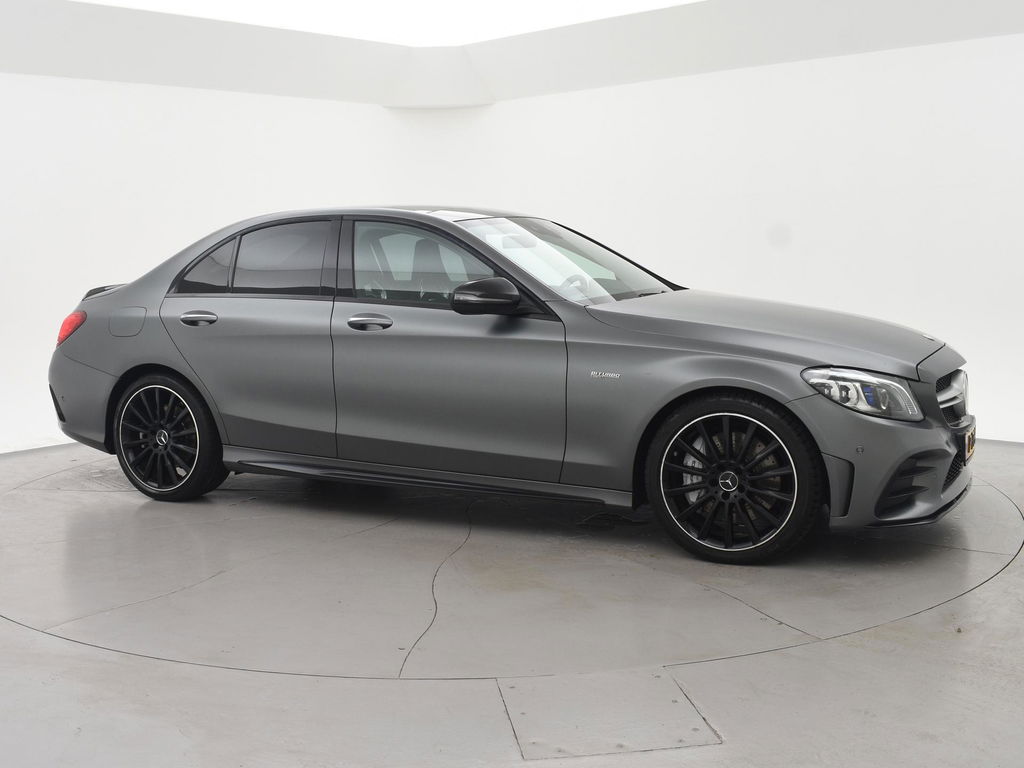 C43 AMG 3.0 V6 Bi-Turbo 390 PK 4matic vierwielaandrijving sedan automaat, Bijzonder compleet uitgerust en bijzondere mooie exterieurkleur: Selenite Gray Magno mat origineel af-fabriek, Head-up display, Volledig leder sportinterieur met echte AMG kuipstoelen, Stoelverwarming, 360 Graden camera, Uitgebreide sfeerverlichting met verschillende kleuren en verlichte luchtroosters, Carbon middenconsole, Burmester premium sound, Distronic+ adaptive cruise control + actieve stuurassistentie, Dodehoek assistentie, Privacy glass, Elektrische achterklep, Keyless-Go, Actieve parkeerassistent met sensoren voor + achter, Full LED koplampen LED Intelligent Light, LED achterlichten, Stoelverwarming, Sportuitlaatsysteem, Zwarte hemelbekleding, Leder sportstuurwiel, Bluetooth telefoon met audiostreaming, Adaptief onderstel met elektronisch regelbare schokdempers, Verlichte AMG dorpellijsten, Rode gordels, Diamond AMG grille, Climate control, Grootlichtassistent.